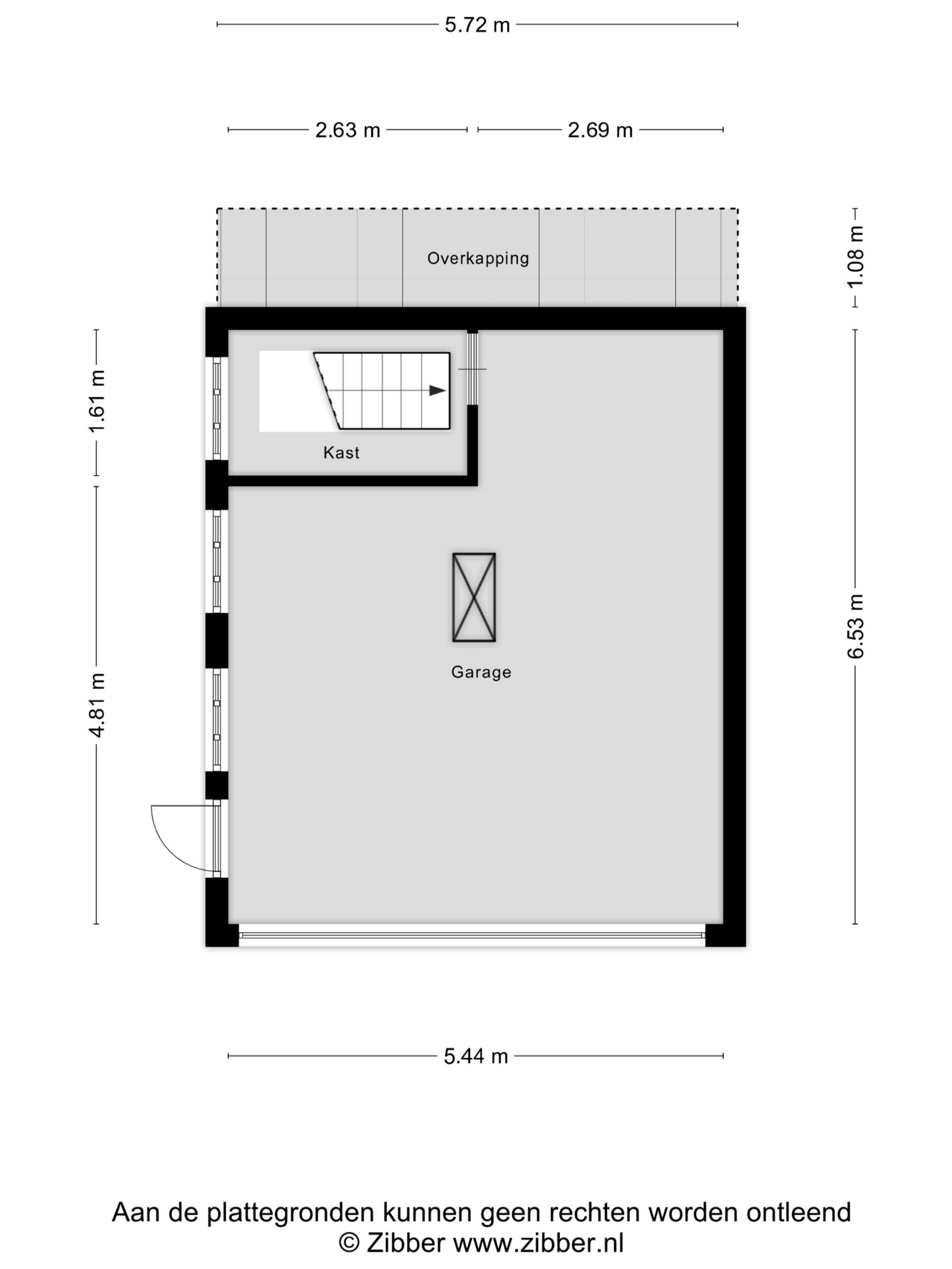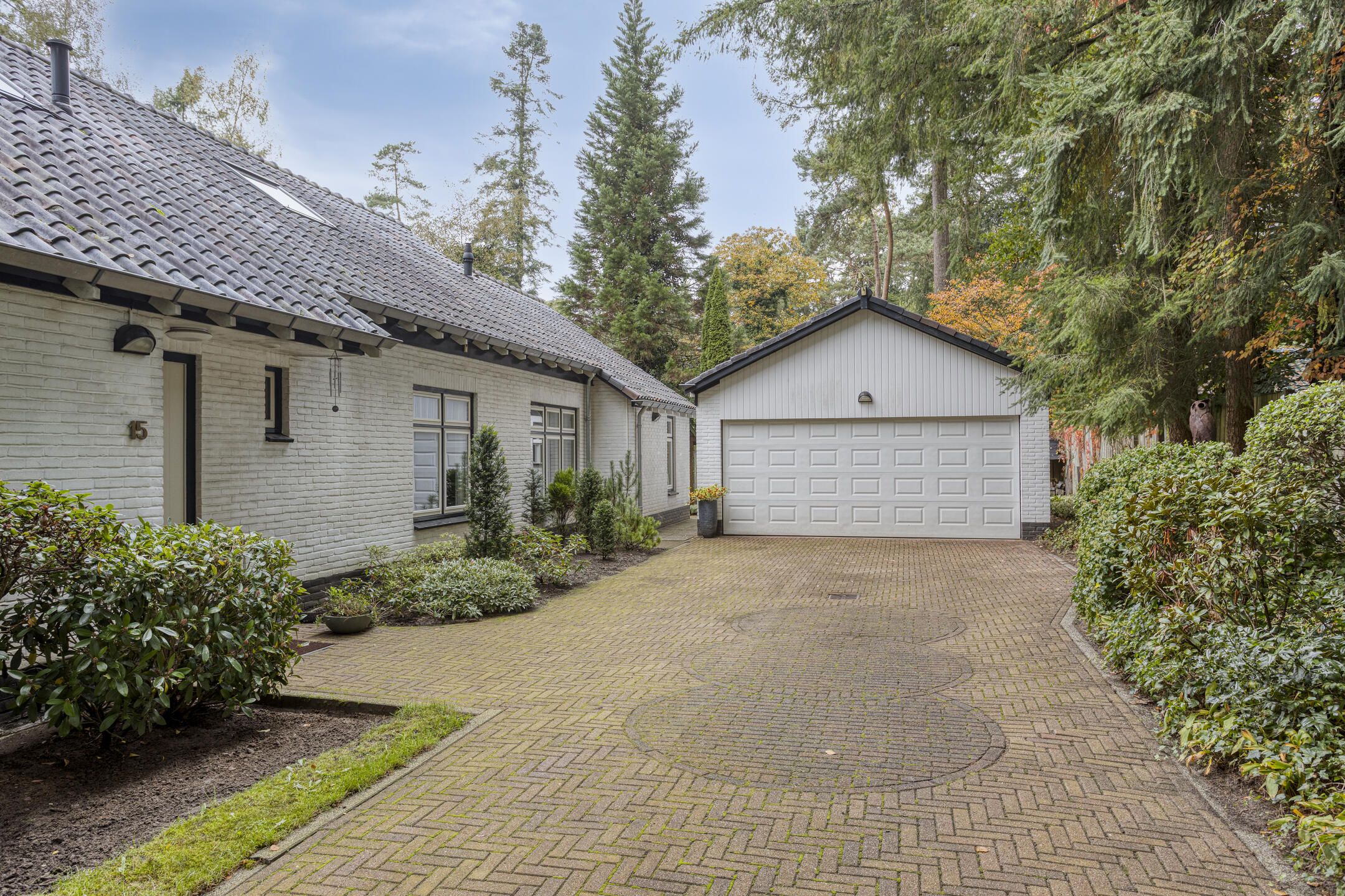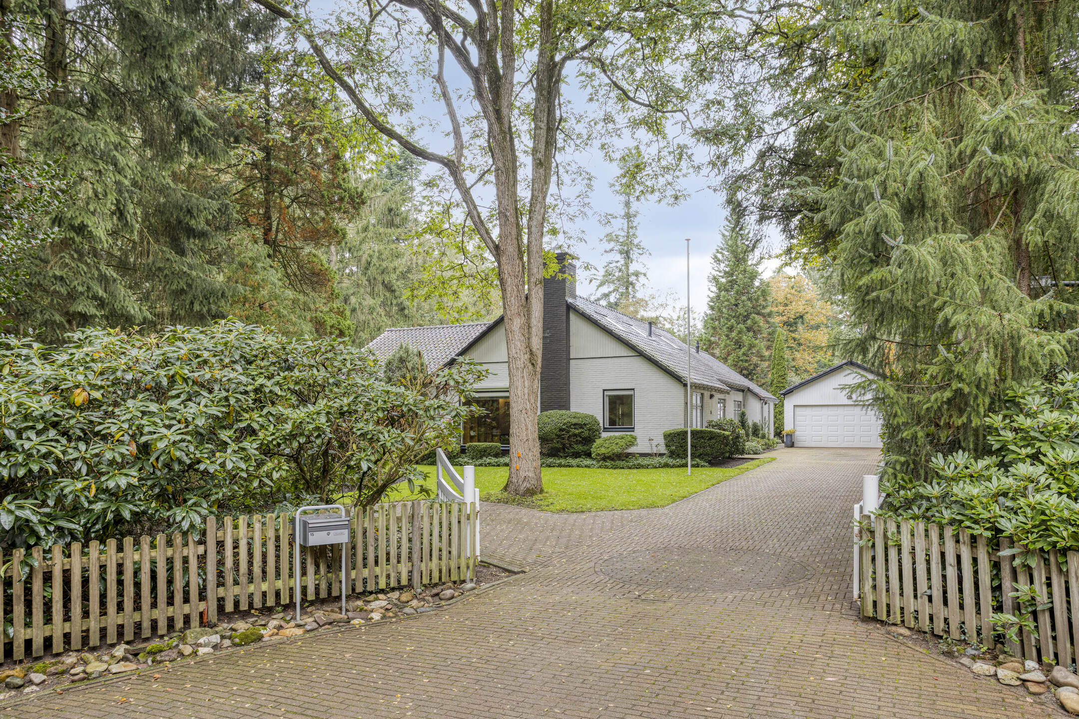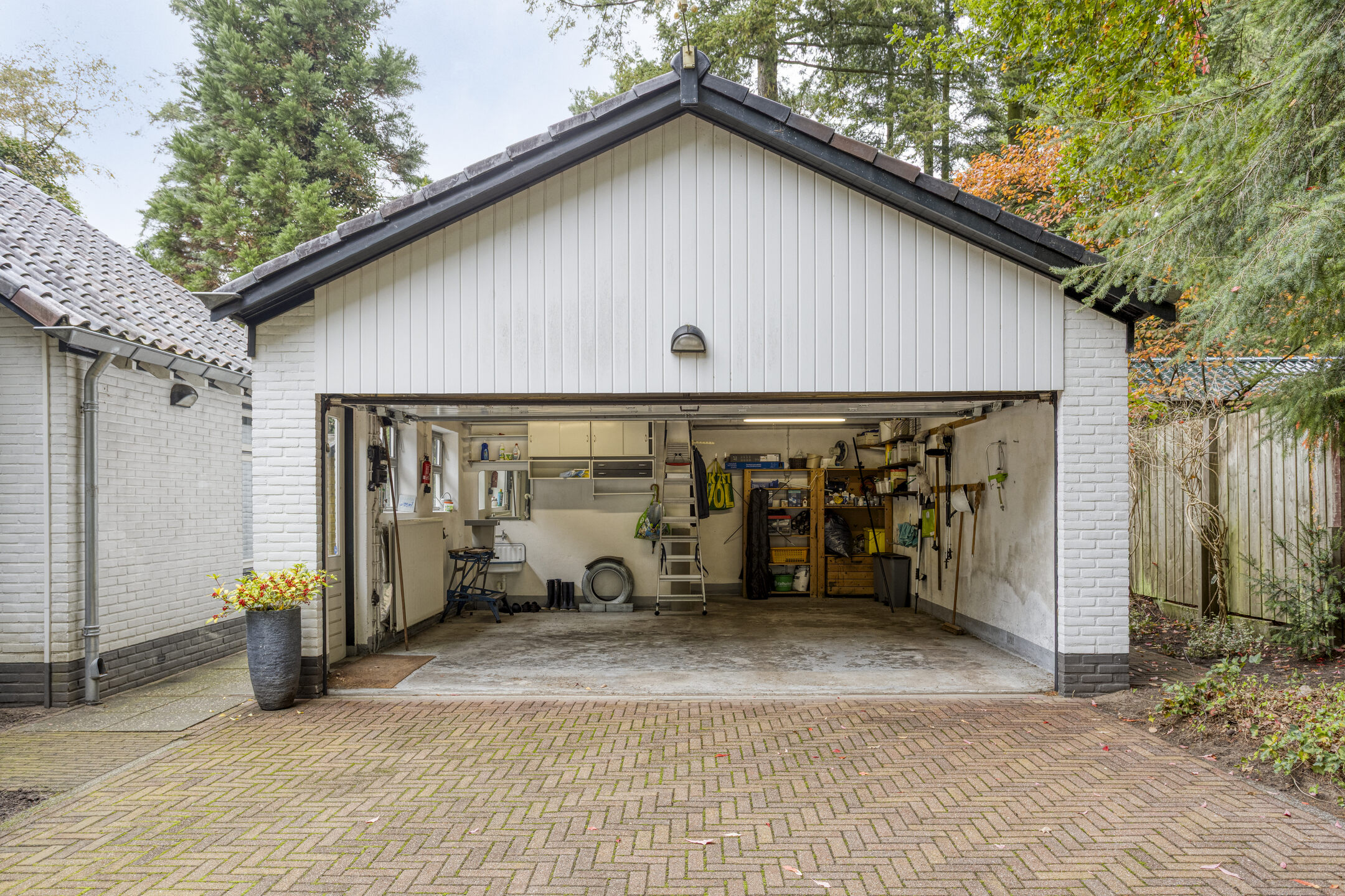 Bij de woning behoort een vrijstaande stenen garage ± 32 m² met vliering en kelder en een vrijstaande houten berging.