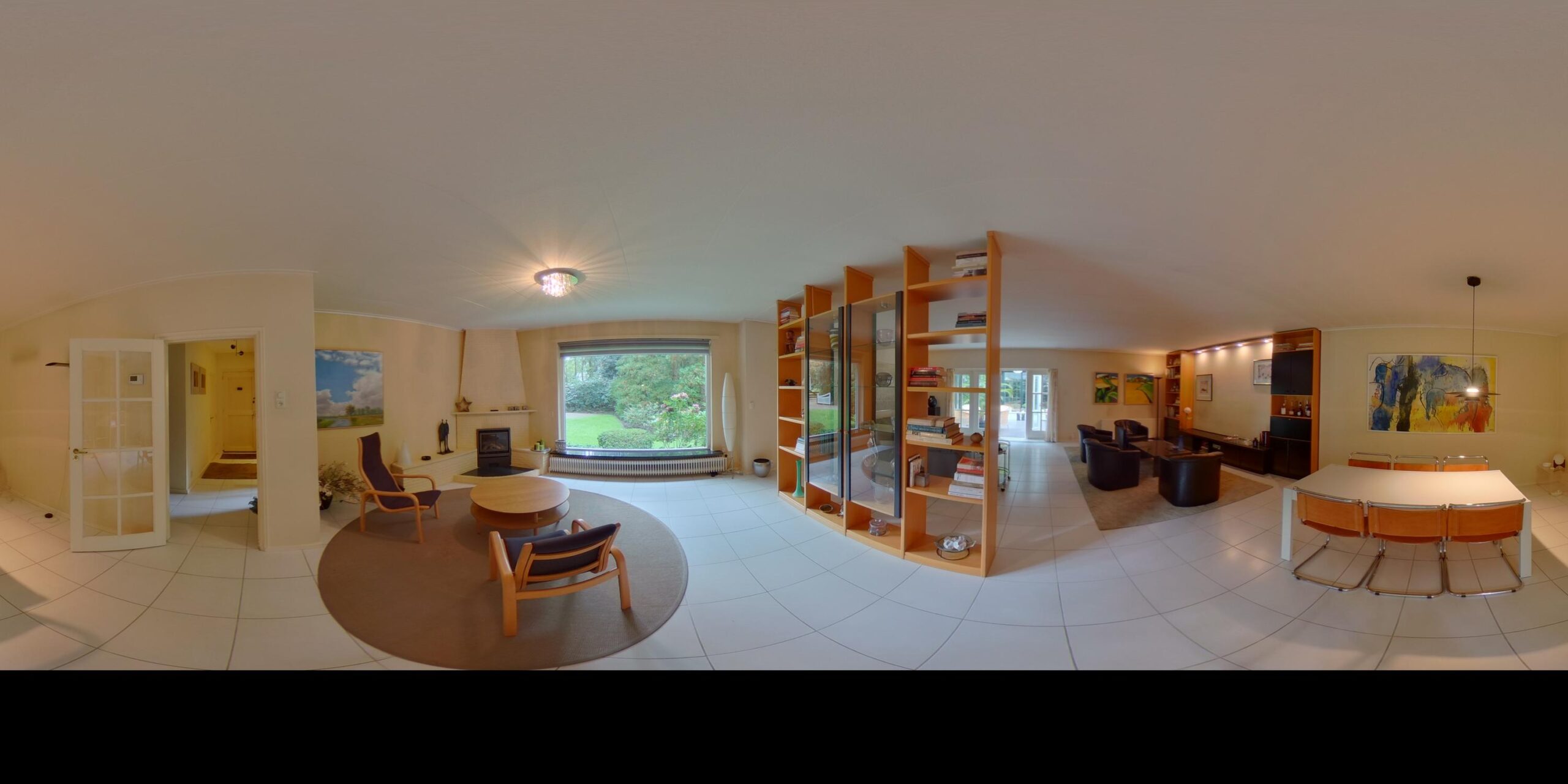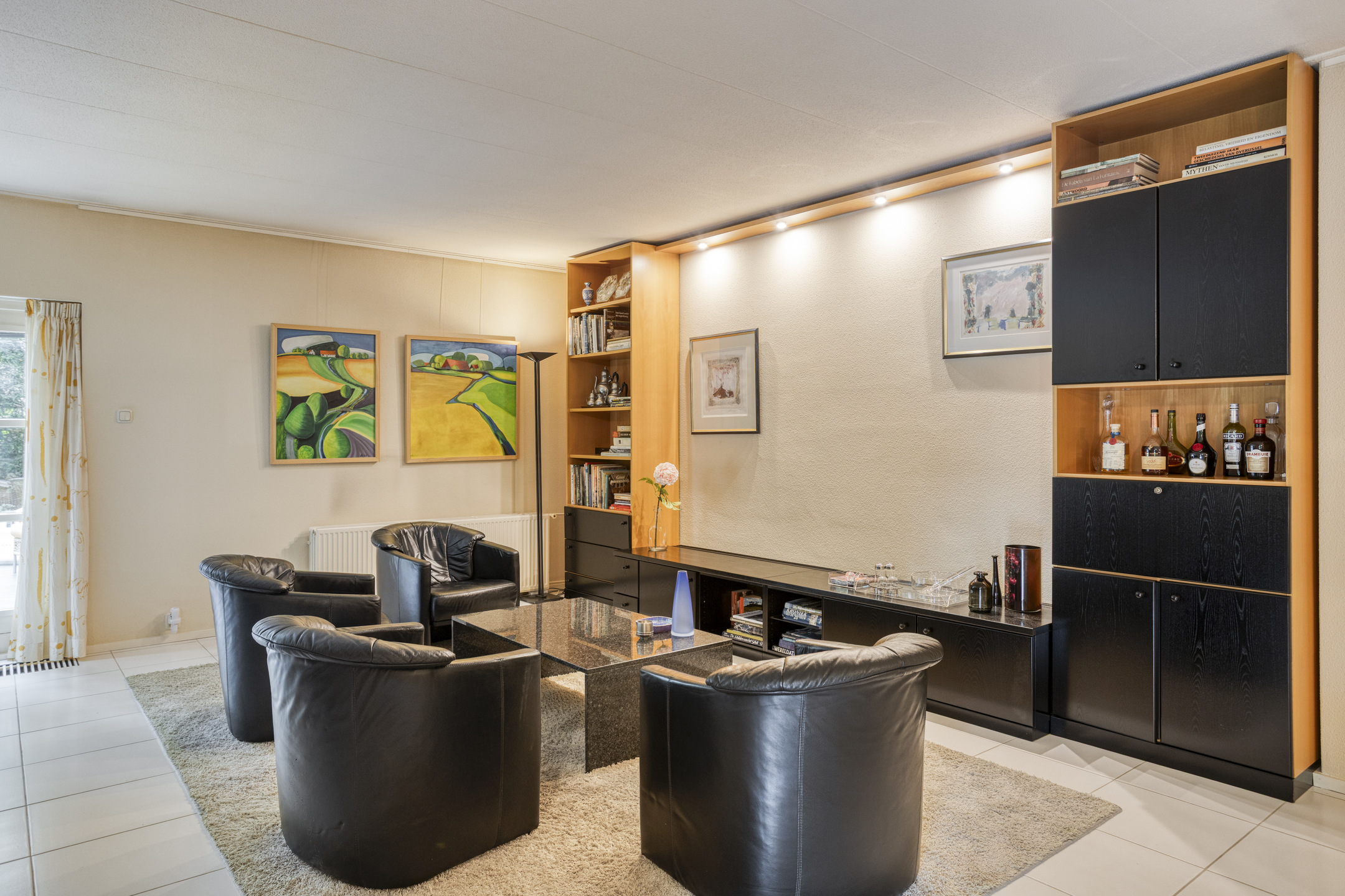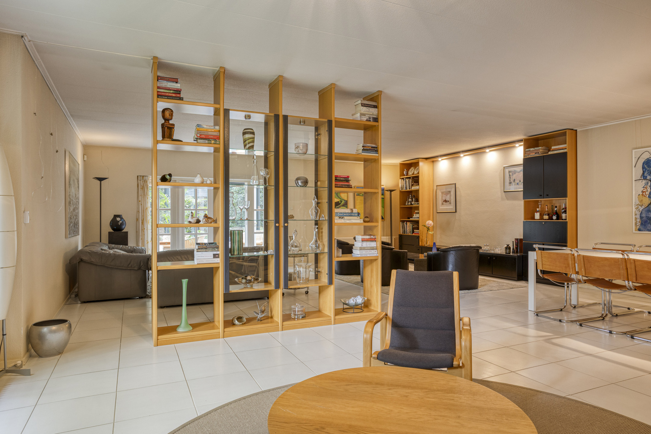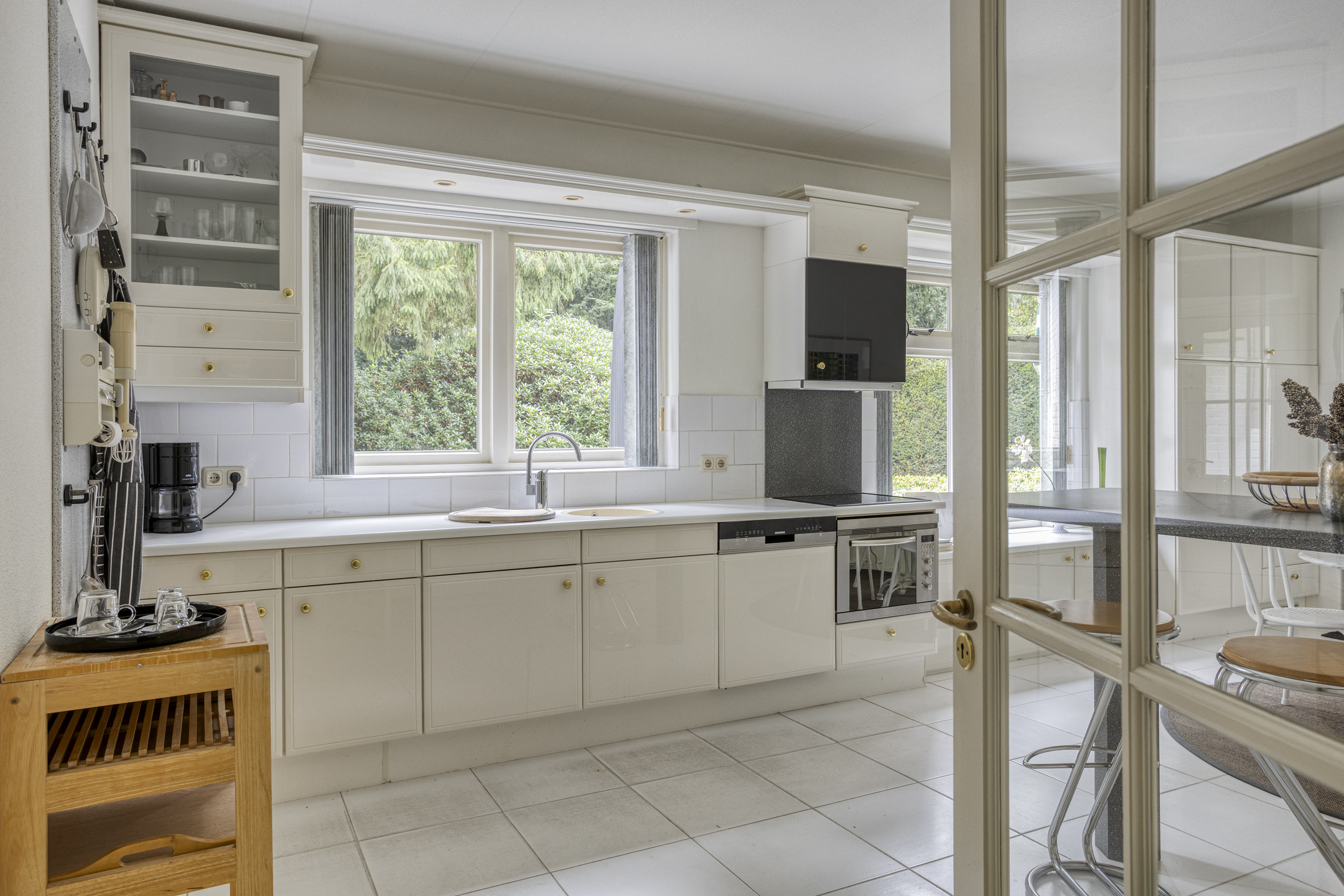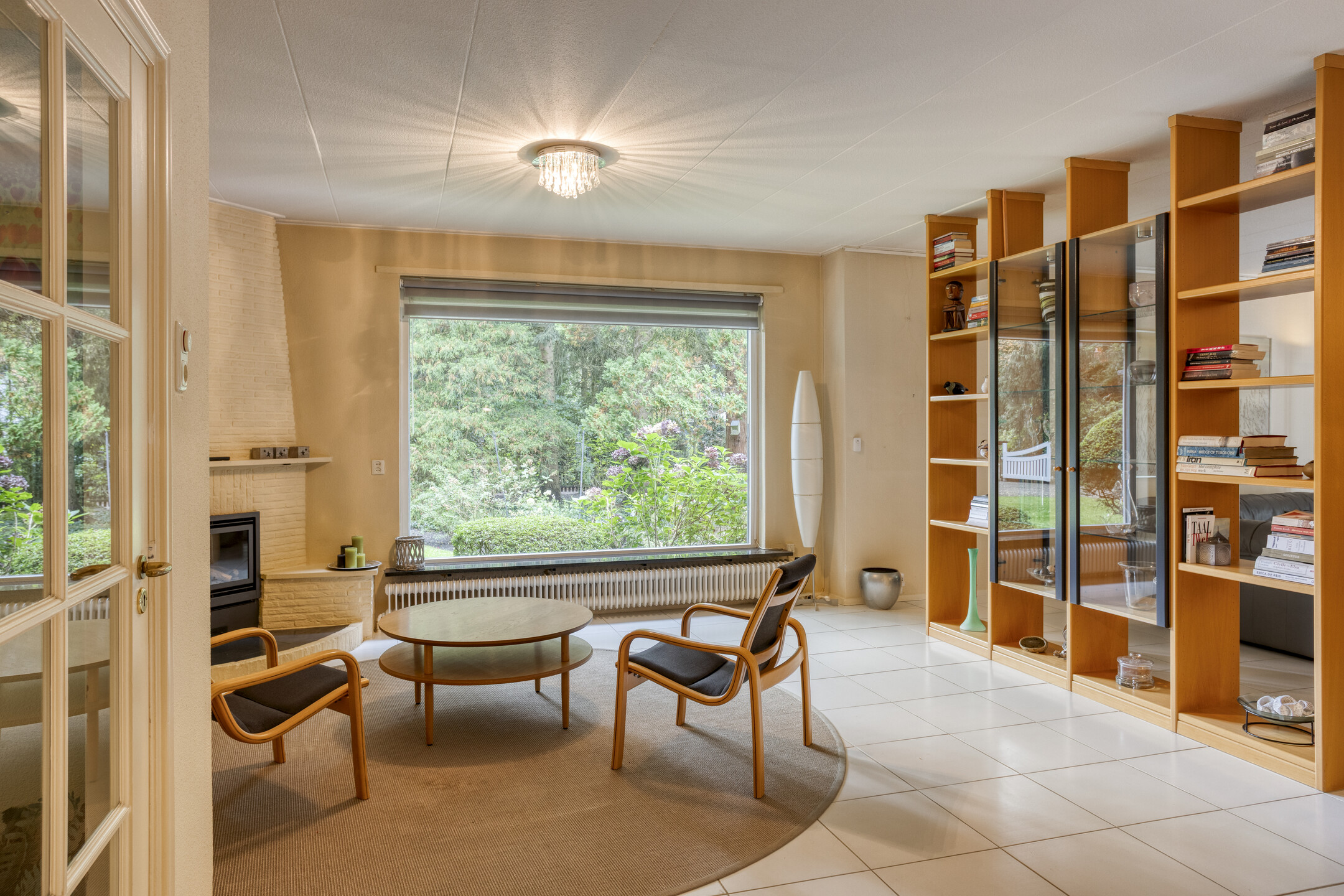 Begane grond: hal/entree met garderobekast – toilet met fonteintje – bijkeuken met wasmachine aansluiting en pantry – royale woonkamer ± 70 m² v.v. lichte plavuizen vloer en schouw met inbouw haard – royale lichte serre met een schitterend uitzicht op de bostuin – werk-/studeerkamer met vaste kast – royale woonkeuken ± 21 m² met toegang naar de achter tuin en inbouwapparatuur (o.a. elektrische kookplaat, afzuigkap, vaatwasser, combi oven en koel-/vriescombinatie) – 3 ruime slaapkamers ± 9, 11 en 18 m² – royale badkamer v.v. ligbad, wastafelmeubel met dubbele wastafel, toilet en douche.