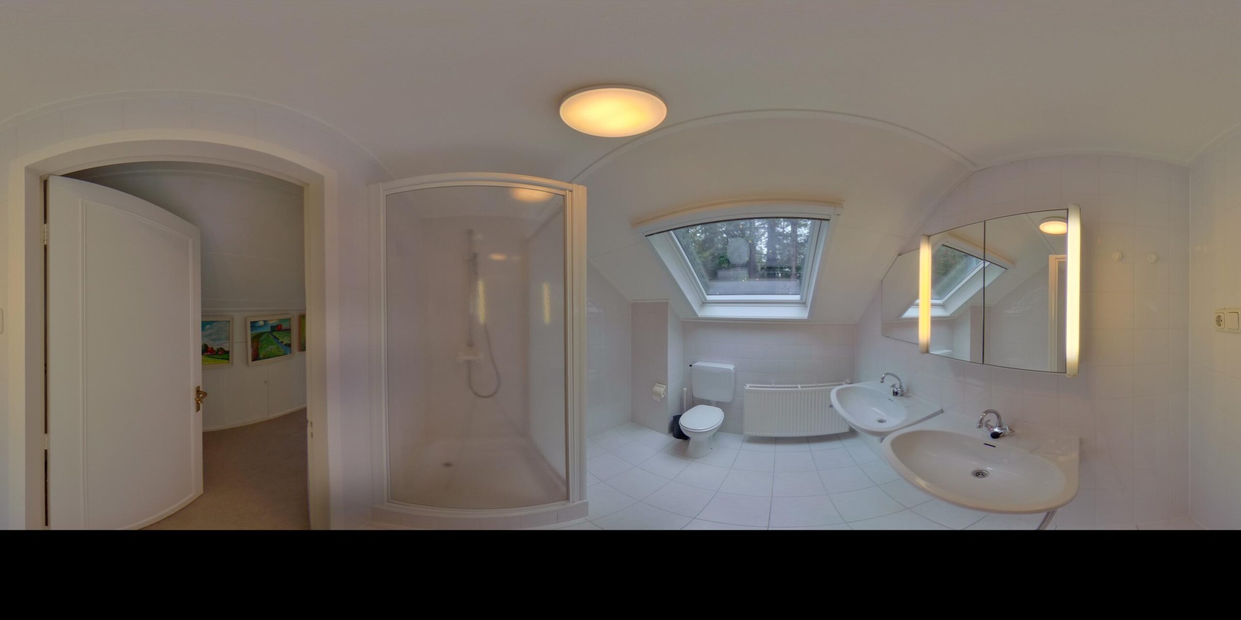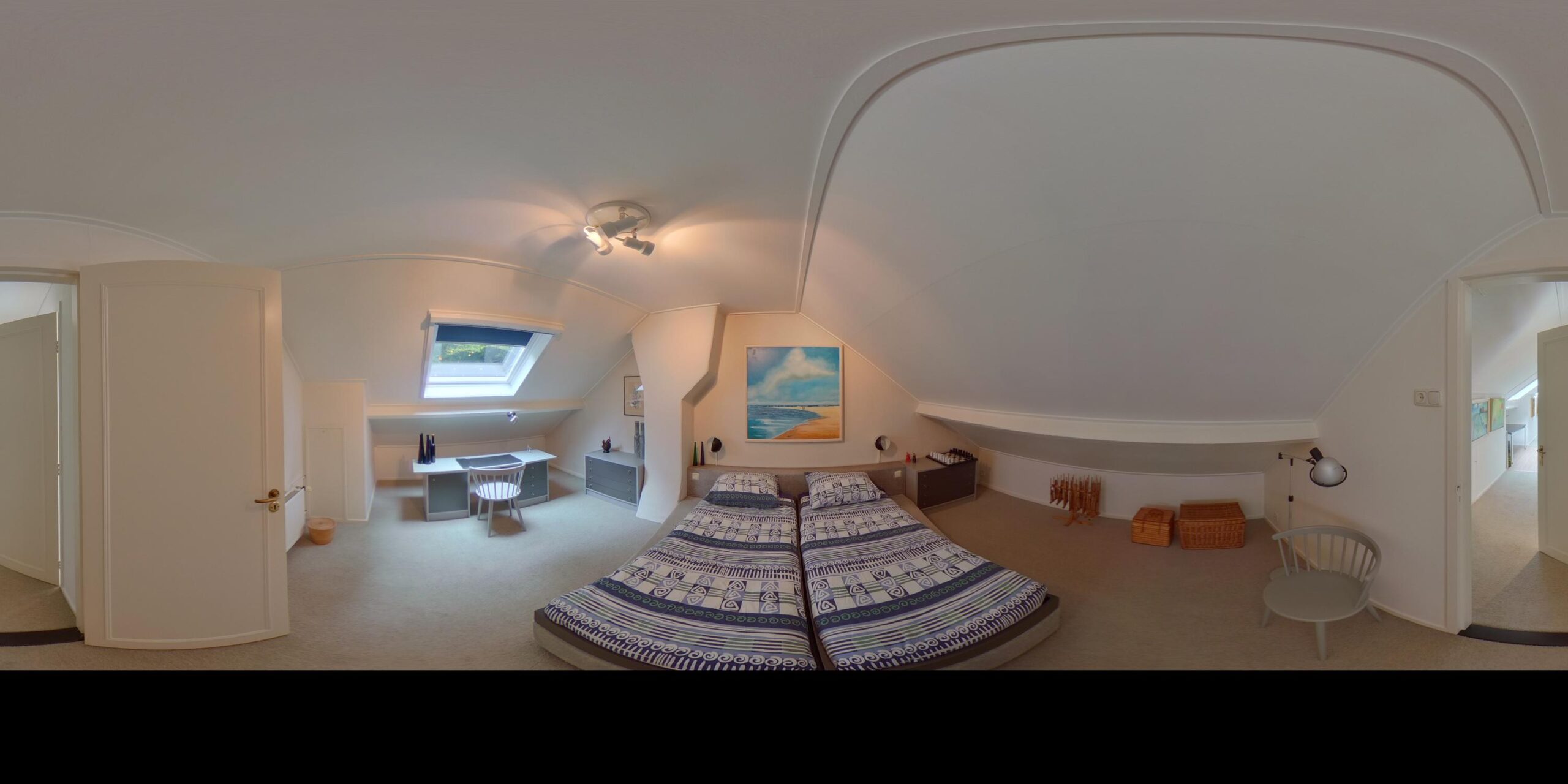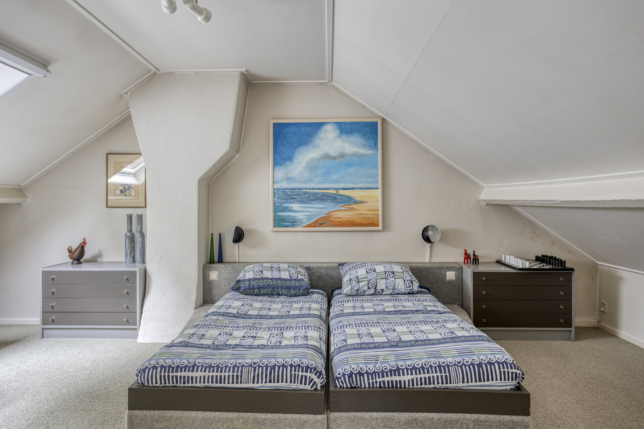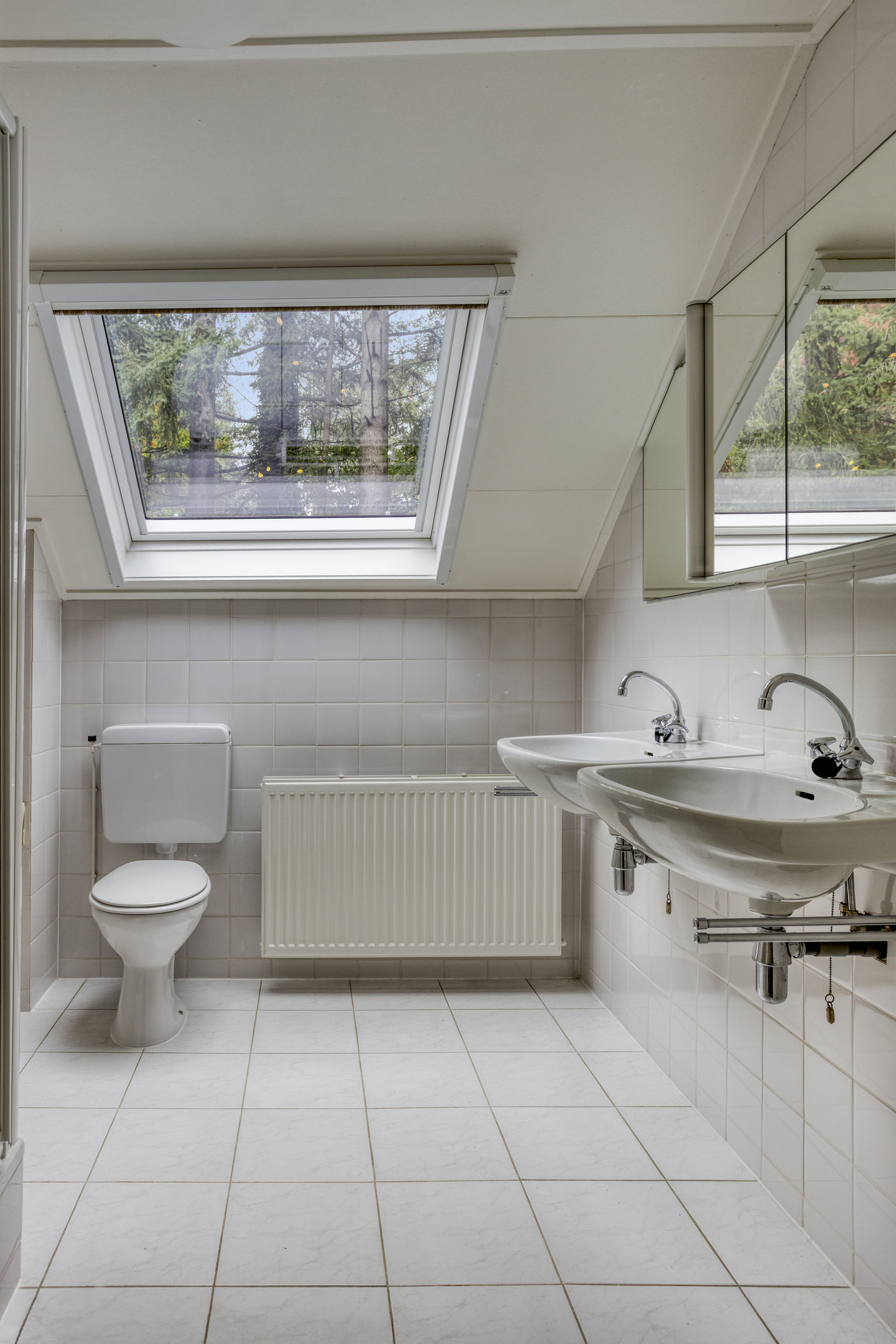Eerste Verdieping: overloop – 2 ruime slaapkamers – badkamer v.v. dubbele wastafel, douche en toilet – veel praktische bergruimte.