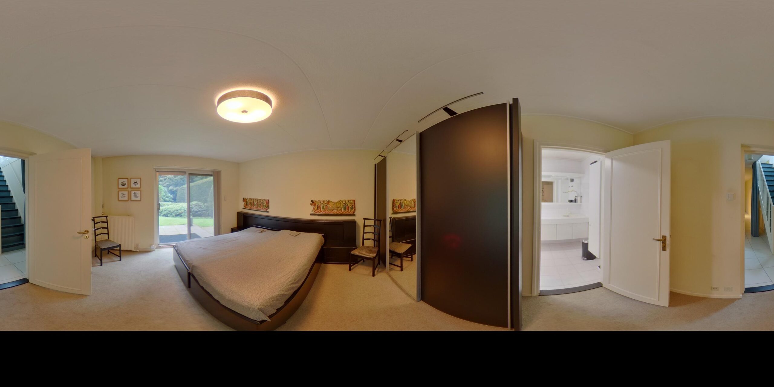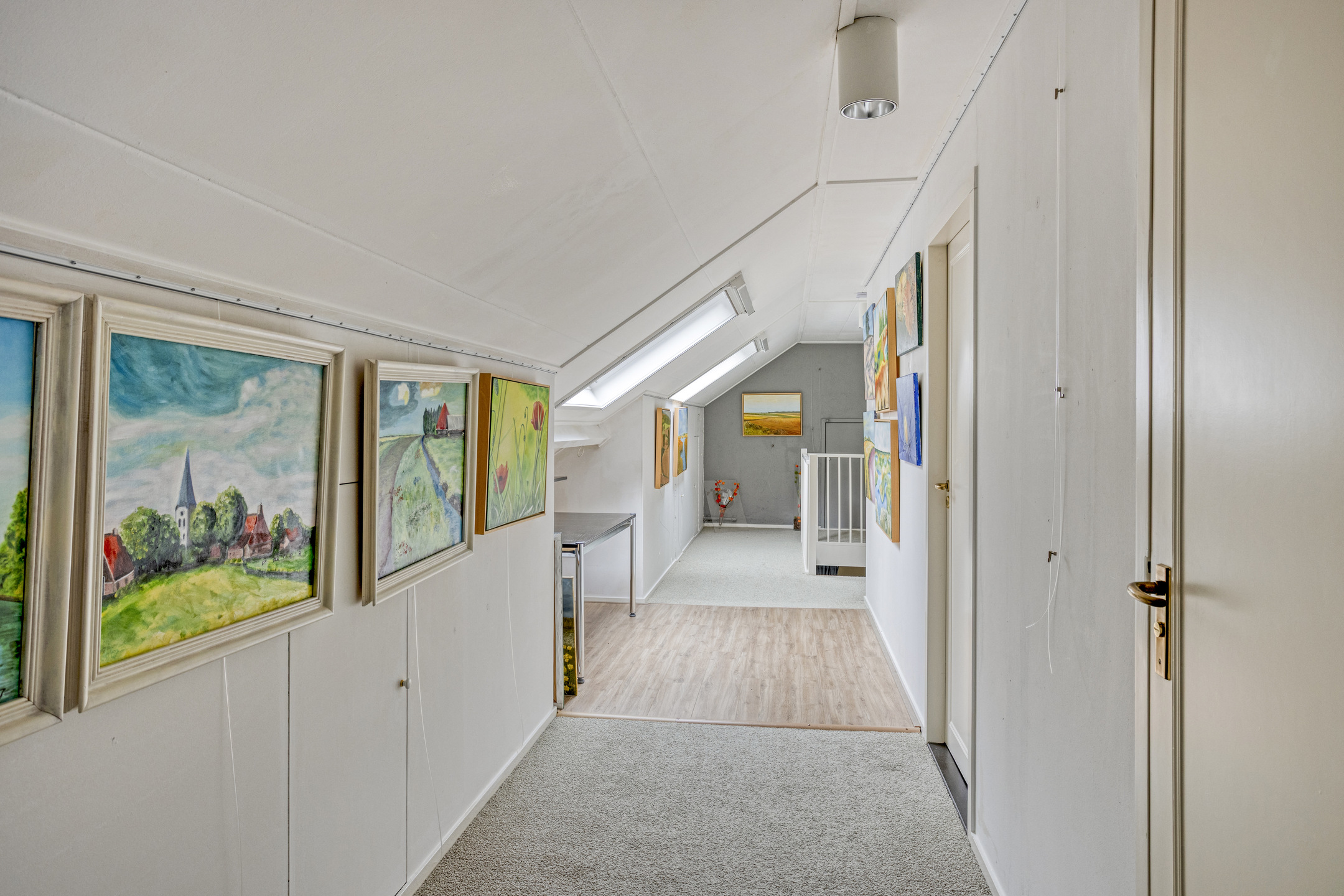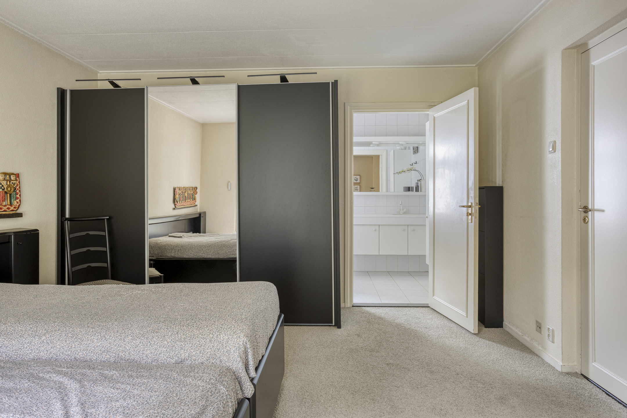 Eerste Verdieping: overloop – 2 ruime slaapkamers – badkamer v.v. dubbele wastafel, douche en toilet – veel praktische bergruimte.