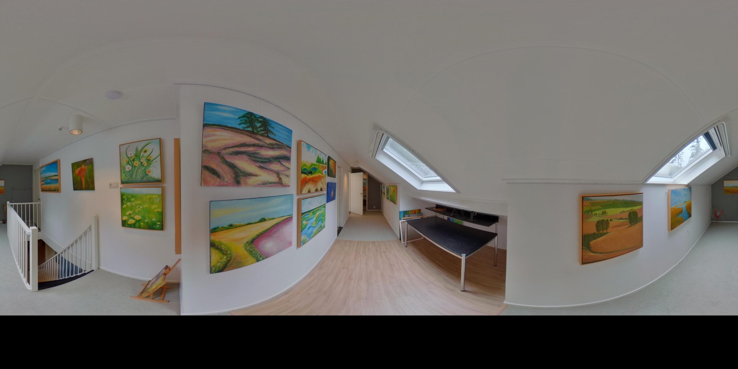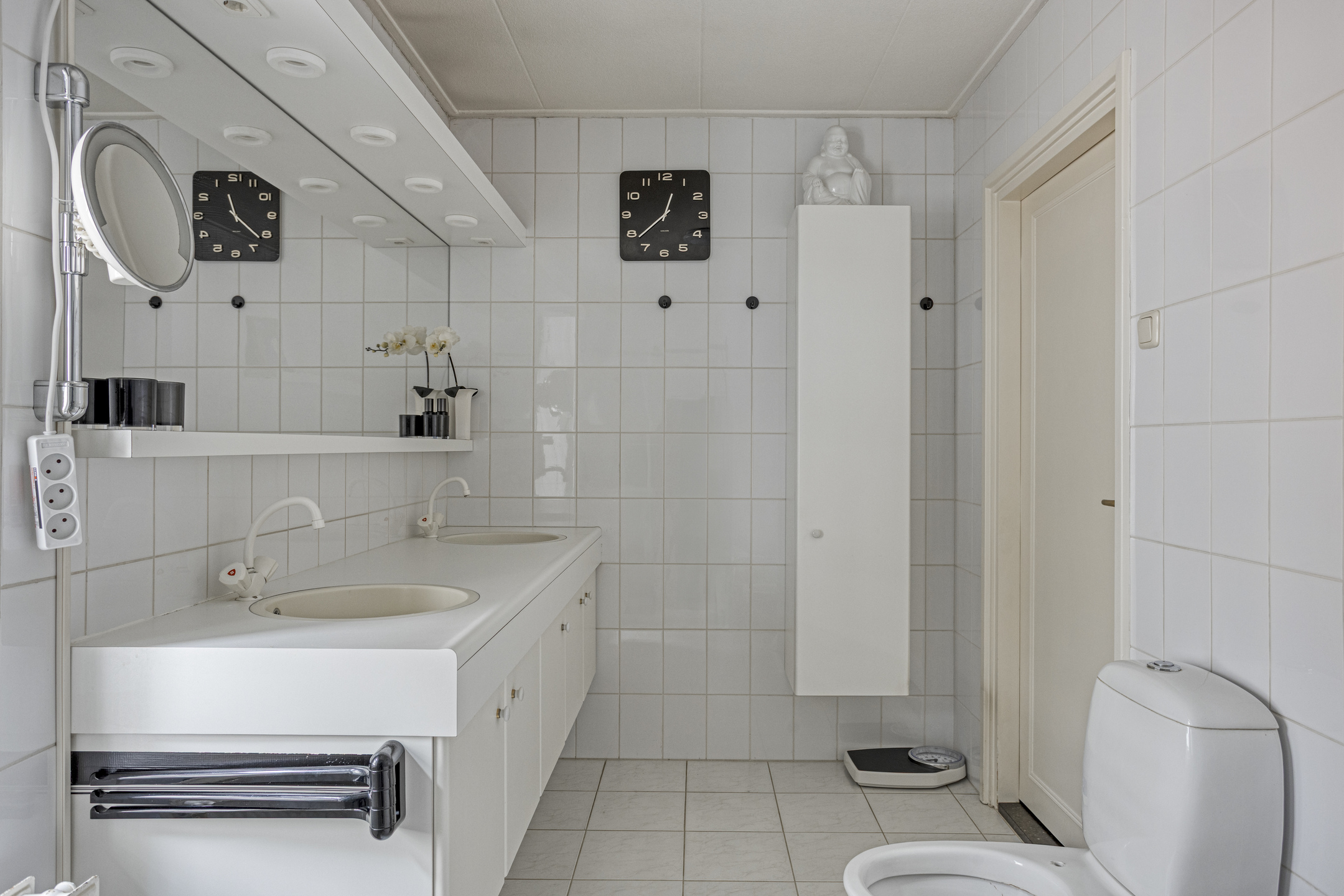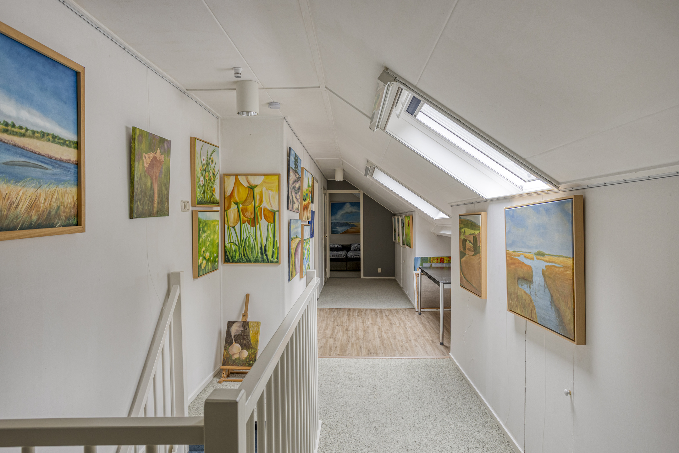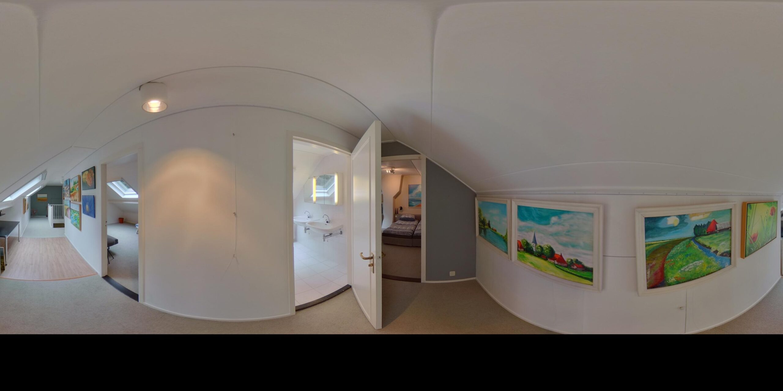 Eerste Verdieping: overloop – 2 ruime slaapkamers – badkamer v.v. dubbele wastafel, douche en toilet – veel praktische bergruimte.