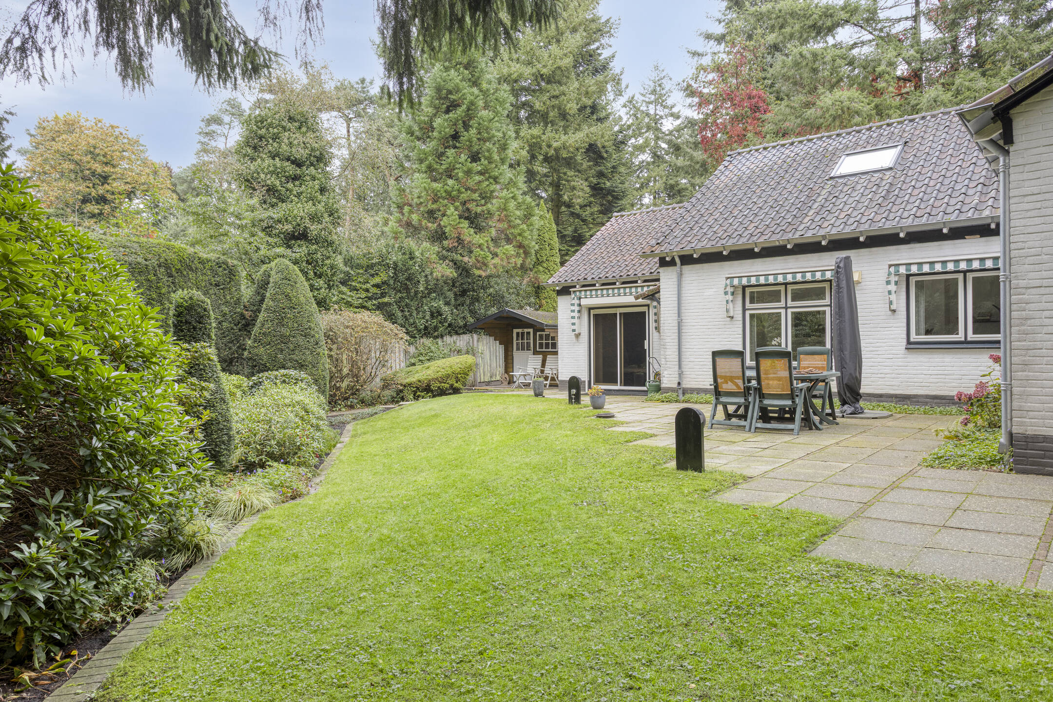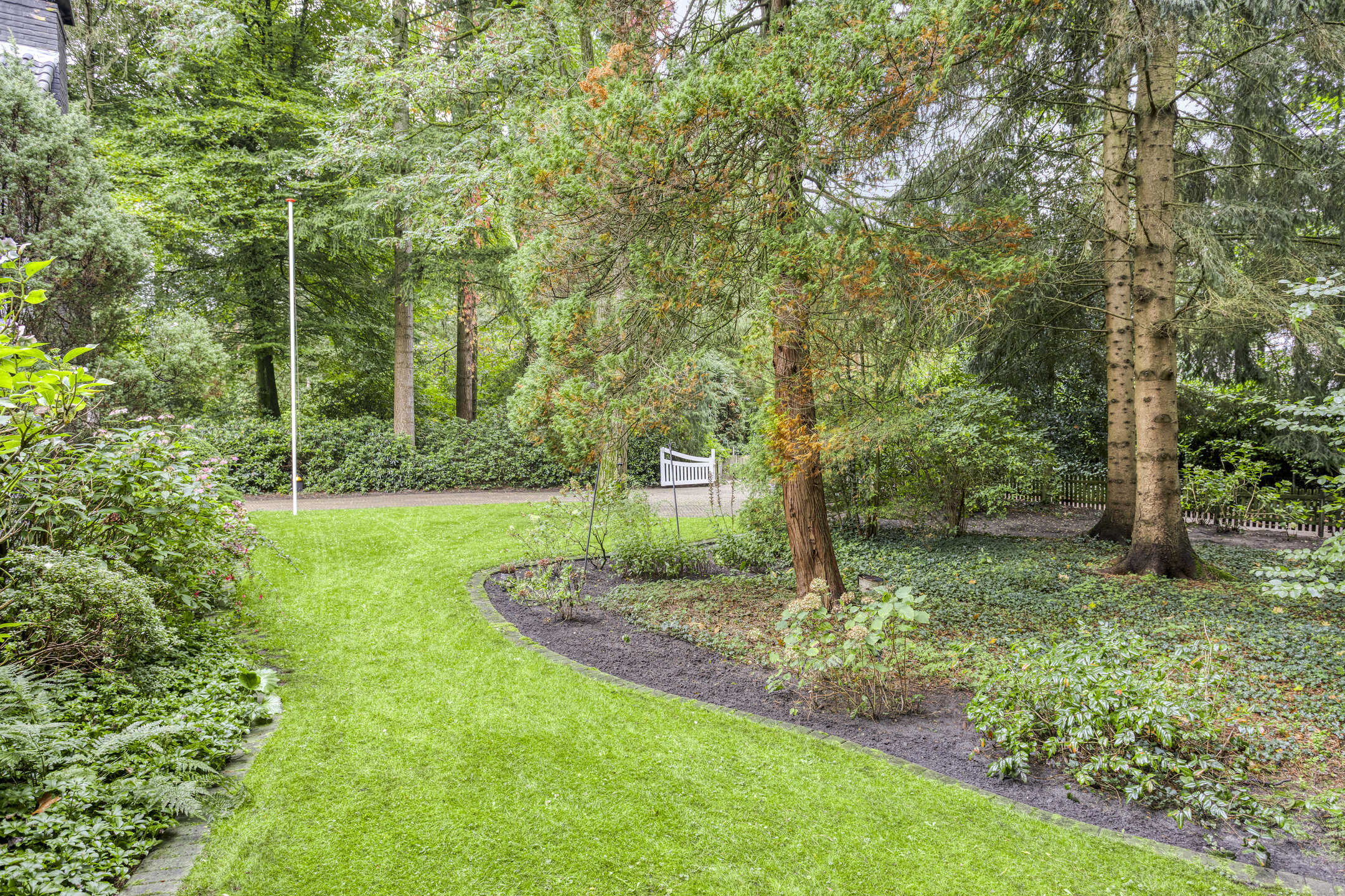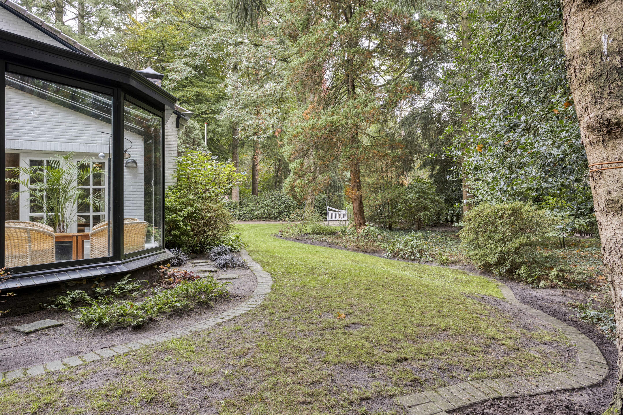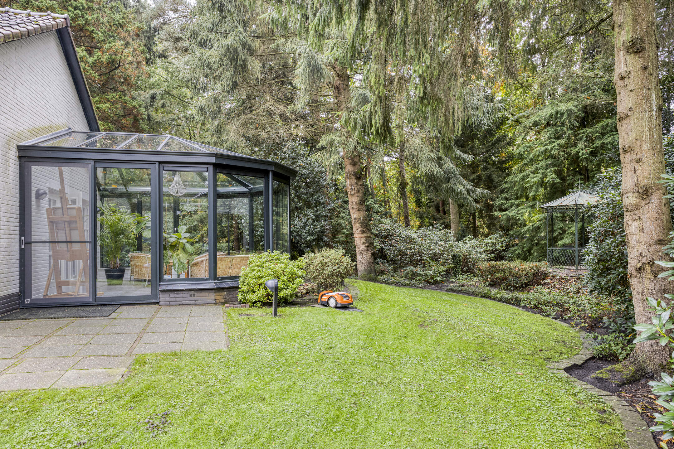 Het bijbehorende perceel is groot 2.378 m² en is volledig omheind met aan de voorzijde een fraaie toegangspoort met royale oprit waar zich ruim voldoende parkeergelegenheid bevindt. De prachtig verzorgde bostuin beschikt over een royaal gazon, diverse plantenborders, een groot zonneterras en terras met prieel. De tuin is uitstekend onderhouden en beschikt over fraaie bomen.