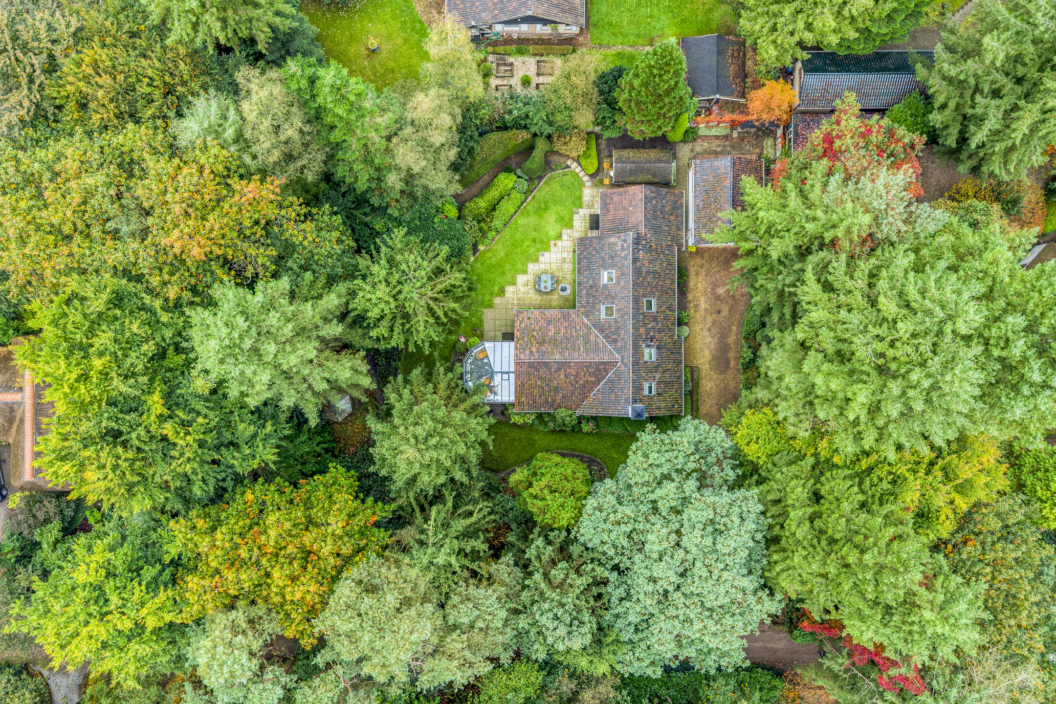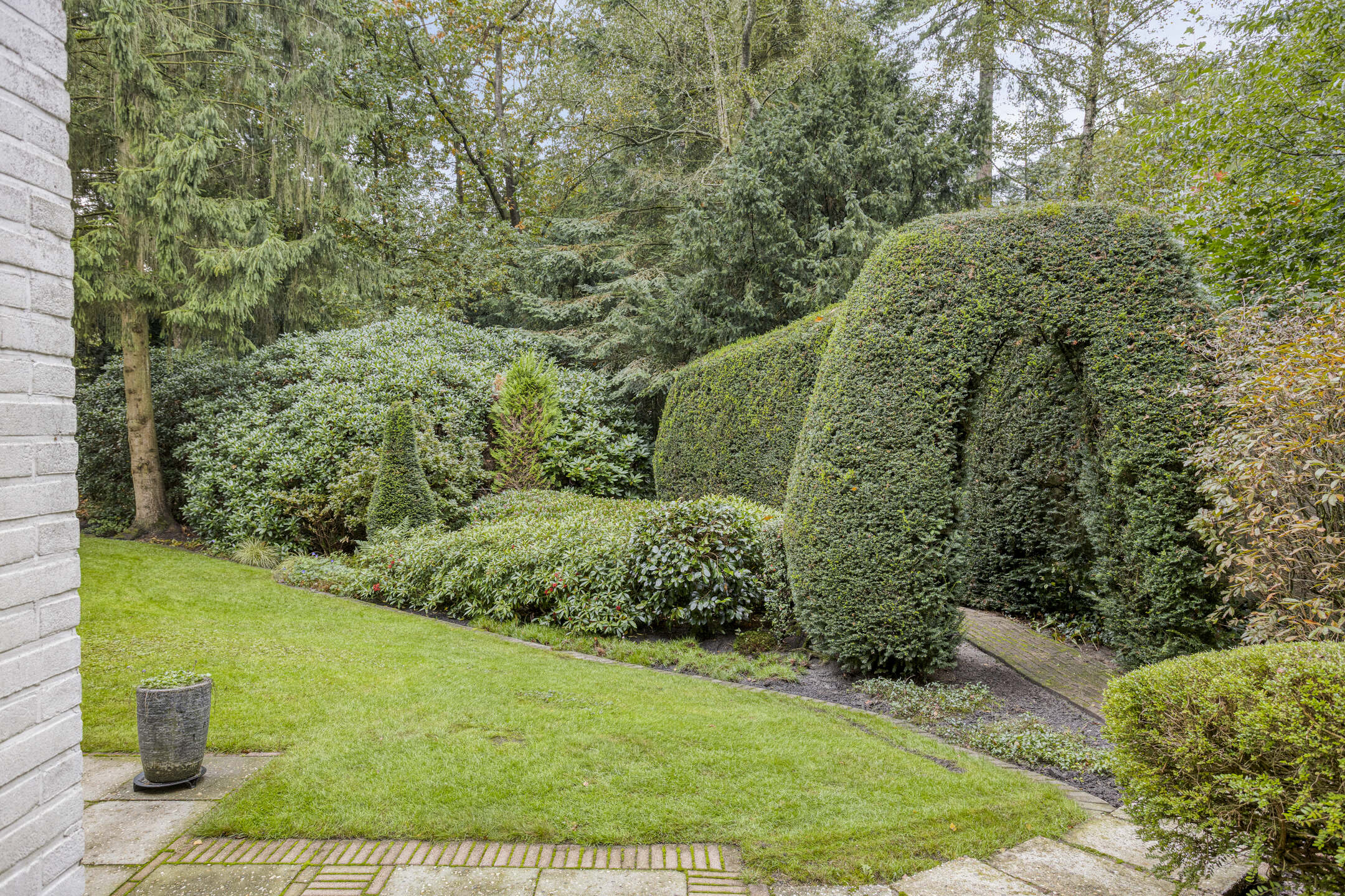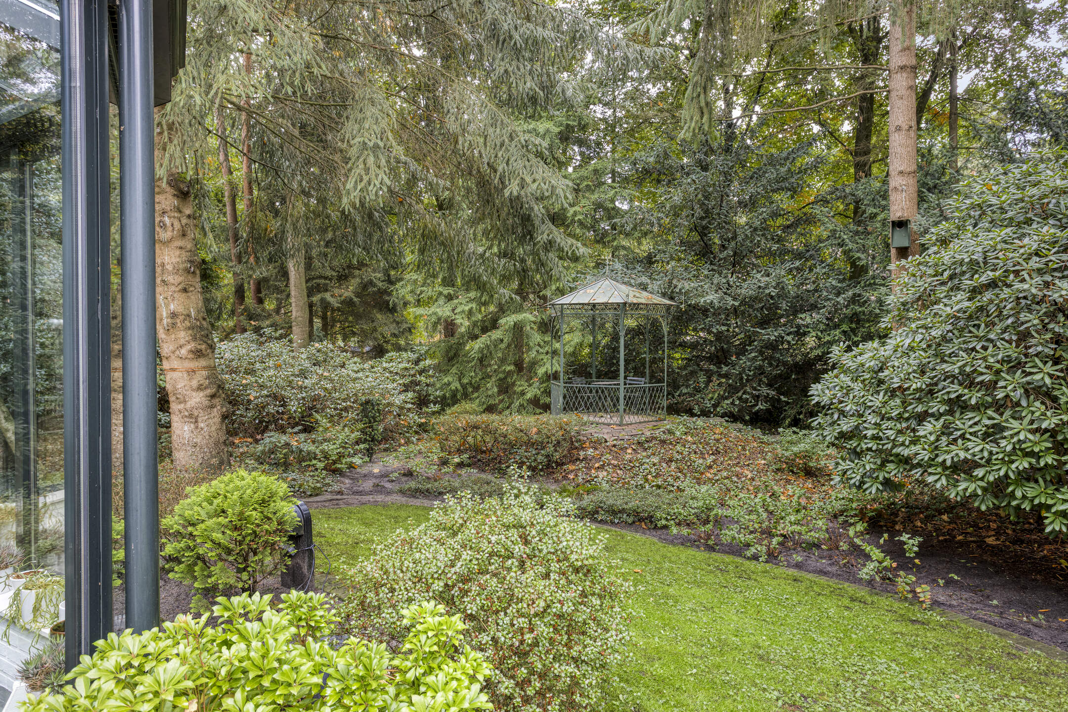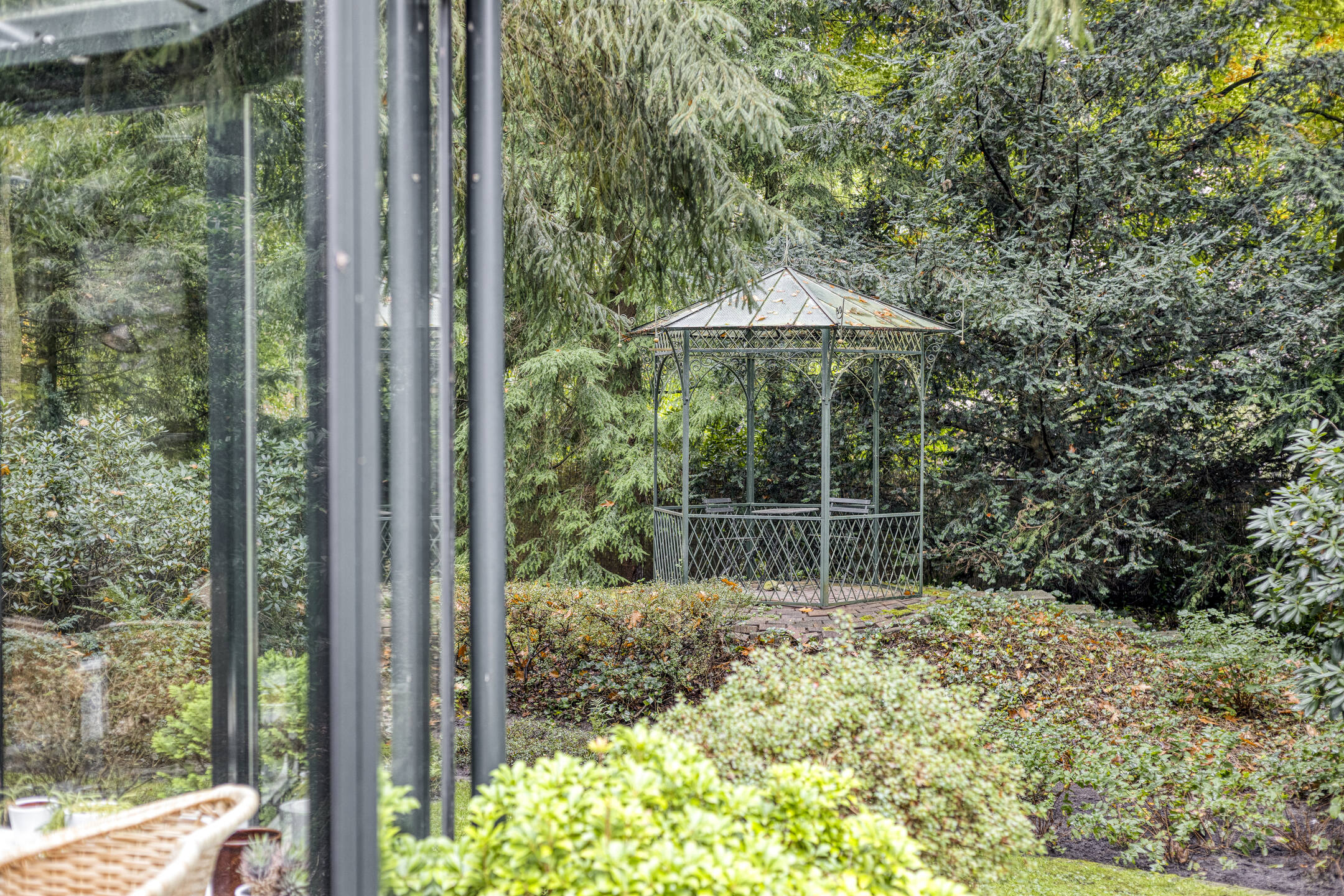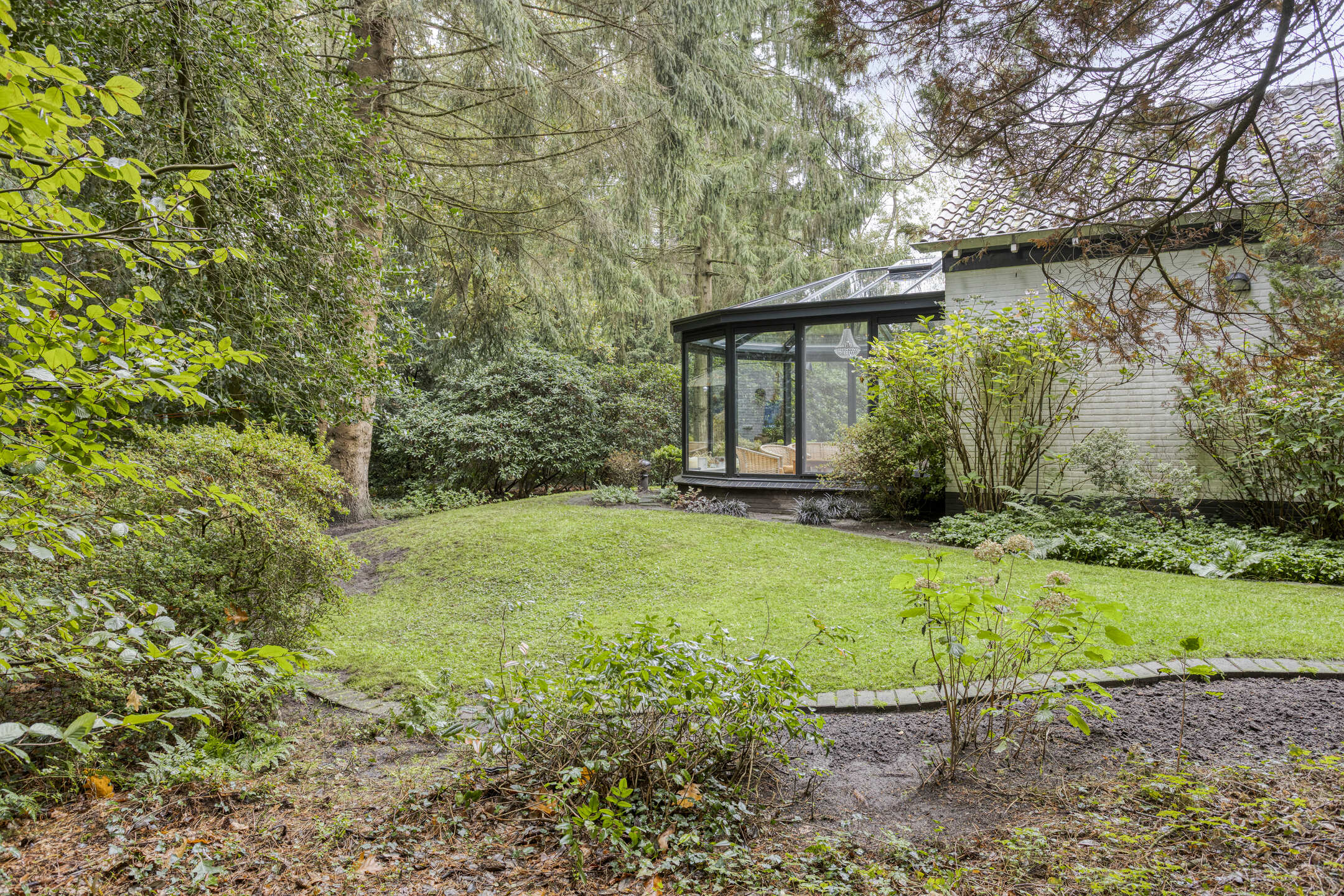 Het bijbehorende perceel is groot 2.378 m² en is volledig omheind met aan de voorzijde een fraaie toegangspoort met royale oprit waar zich ruim voldoende parkeergelegenheid bevindt. De prachtig verzorgde bostuin beschikt over een royaal gazon, diverse plantenborders, een groot zonneterras en terras met prieel. De tuin is uitstekend onderhouden en beschikt over fraaie bomen.