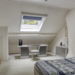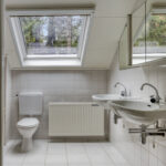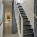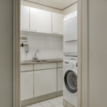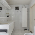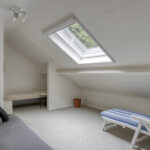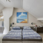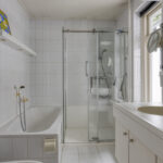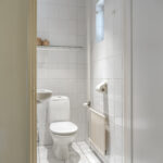 Eerste Verdieping: overloop – 2 ruime slaapkamers – badkamer v.v. dubbele wastafel, douche en toilet – veel praktische bergruimte.