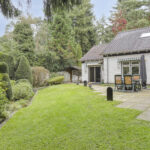 Het bijbehorende perceel is groot 2.378 m² en is volledig omheind met aan de voorzijde een fraaie toegangspoort met royale oprit waar zich ruim voldoende parkeergelegenheid bevindt. De prachtig verzorgde bostuin beschikt over een royaal gazon, diverse plantenborders, een groot zonneterras en terras met prieel. De tuin is uitstekend onderhouden en beschikt over fraaie bomen.