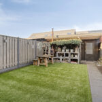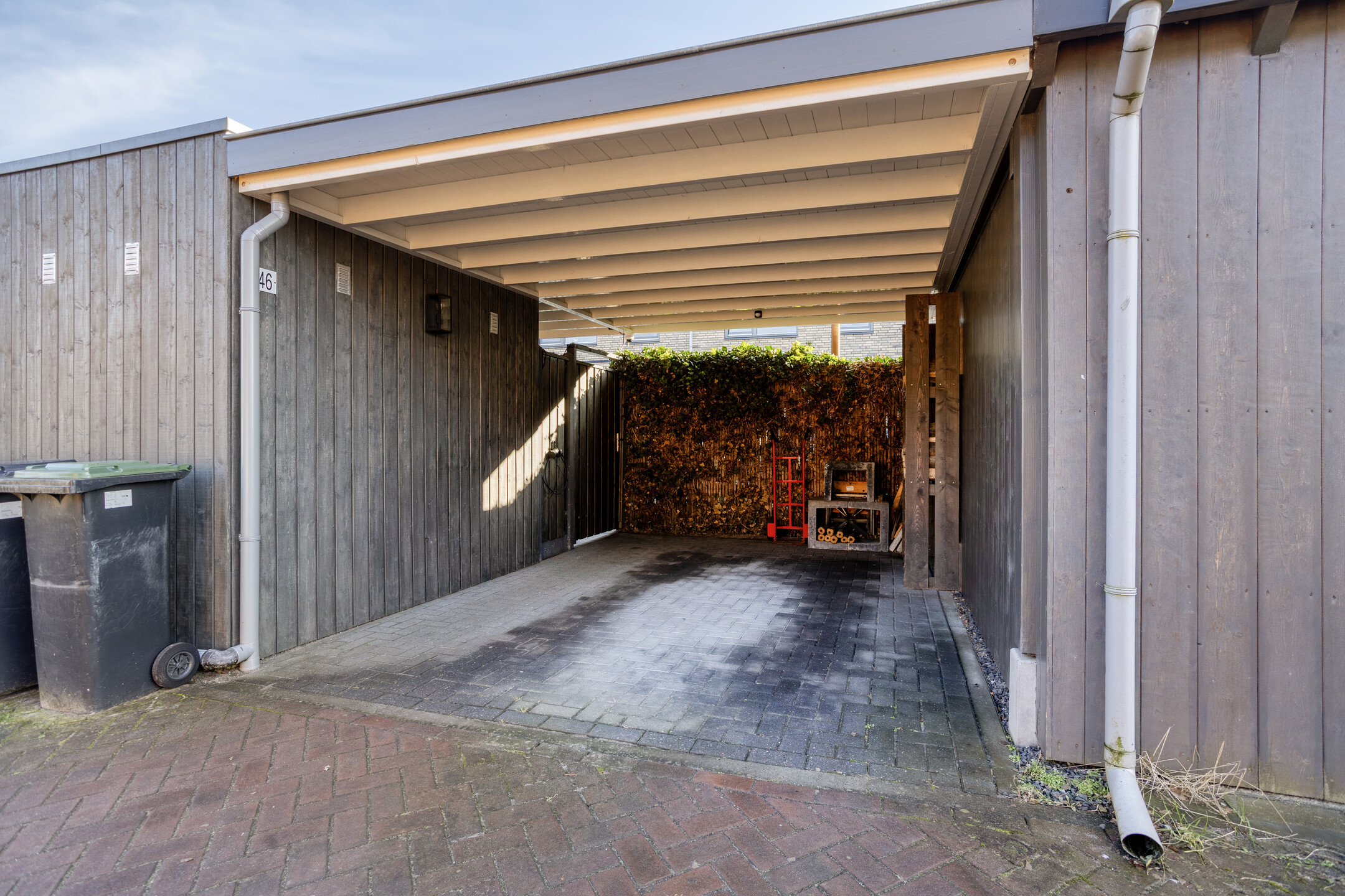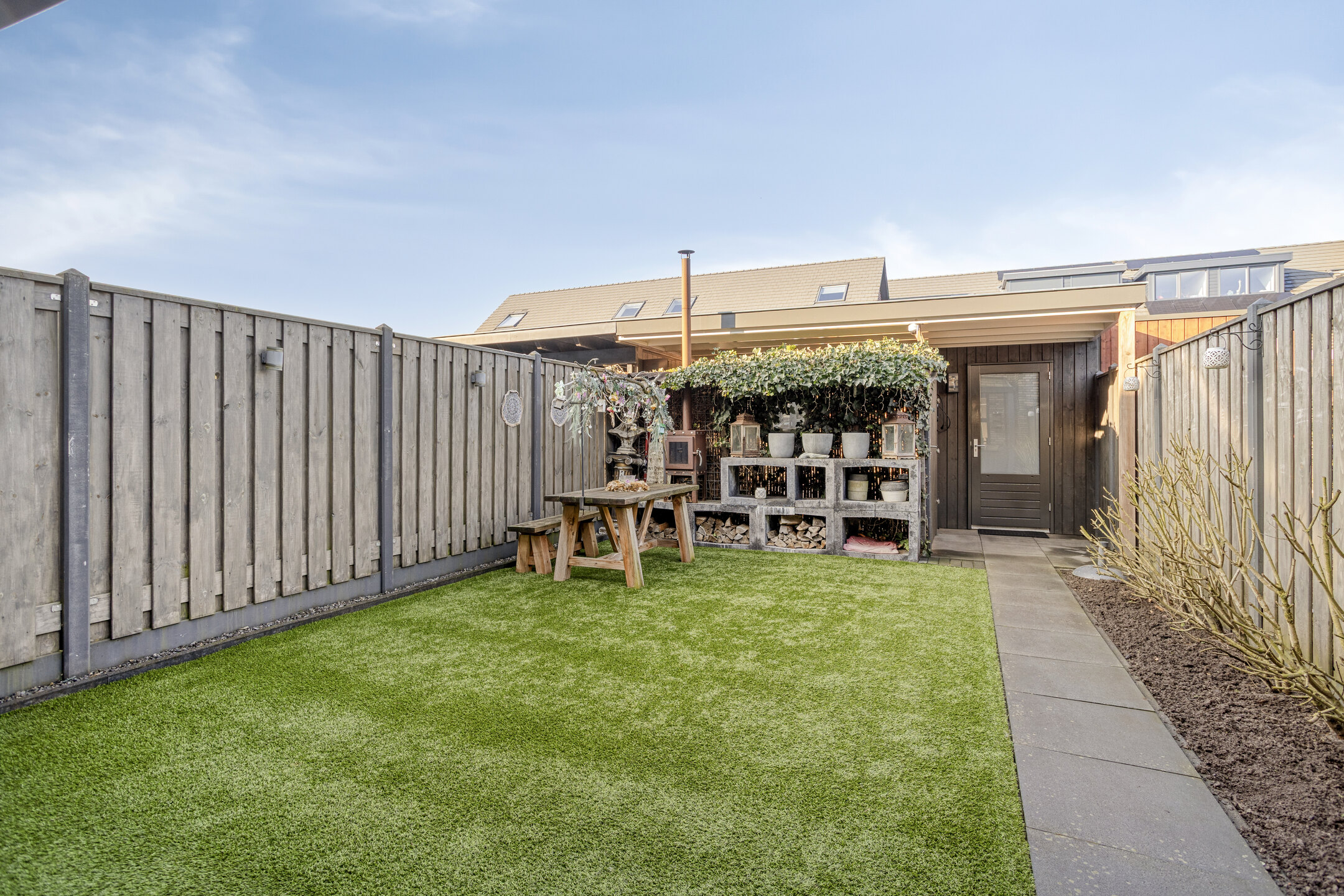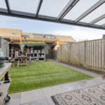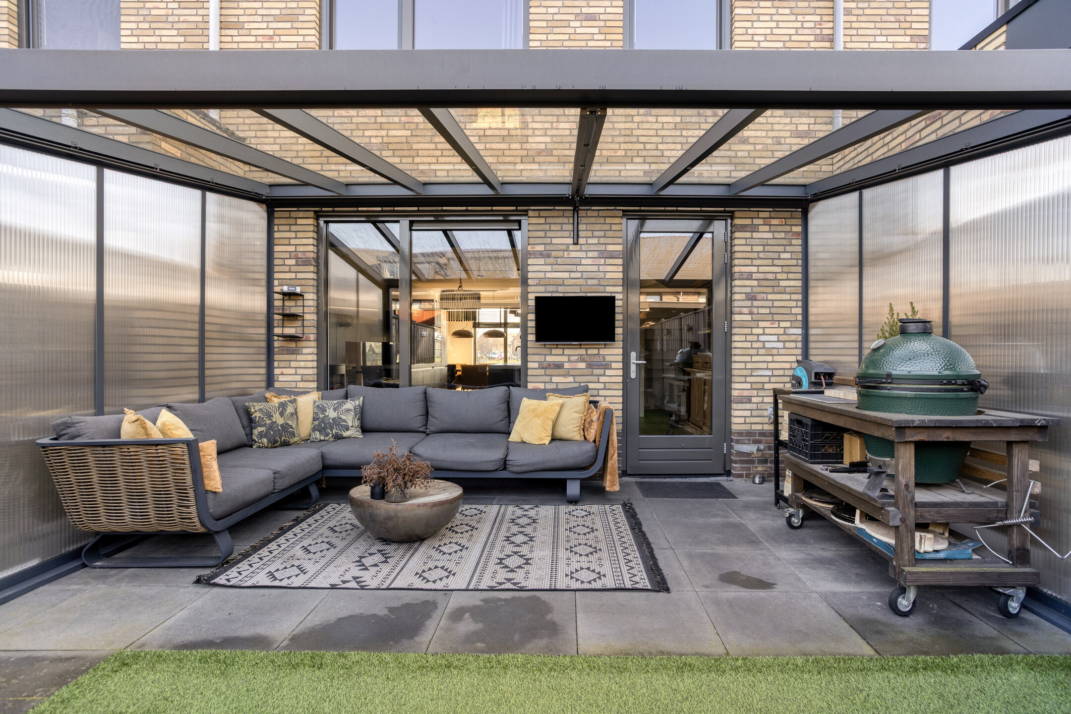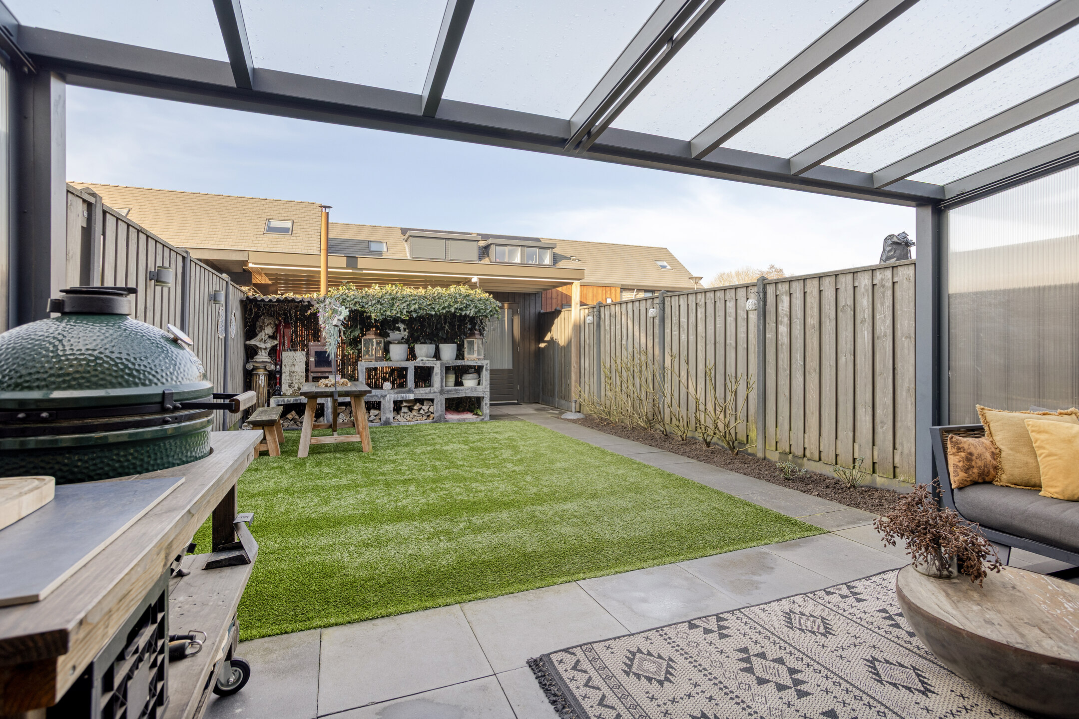 De onderhoudsvrije achtertuin met kunstgras is gunstig gelegen op het noordwesten en biedt altijd een fijne combinatie van zon en schaduw. De ruime veranda met zonwering is een heerlijke plek om te ontspannen. Deze veranda kan desgewenst eenvoudig worden voorzien van glazen schuifwanden, waardoor u een tweede woonkamer creëert. Daarnaast zijn er meerdere stroompunten in de tuin aanwezig. Een recent gebouwde carport completeert het geheel en draagt bij aan het luxe en comfortabele woongevoel.