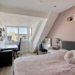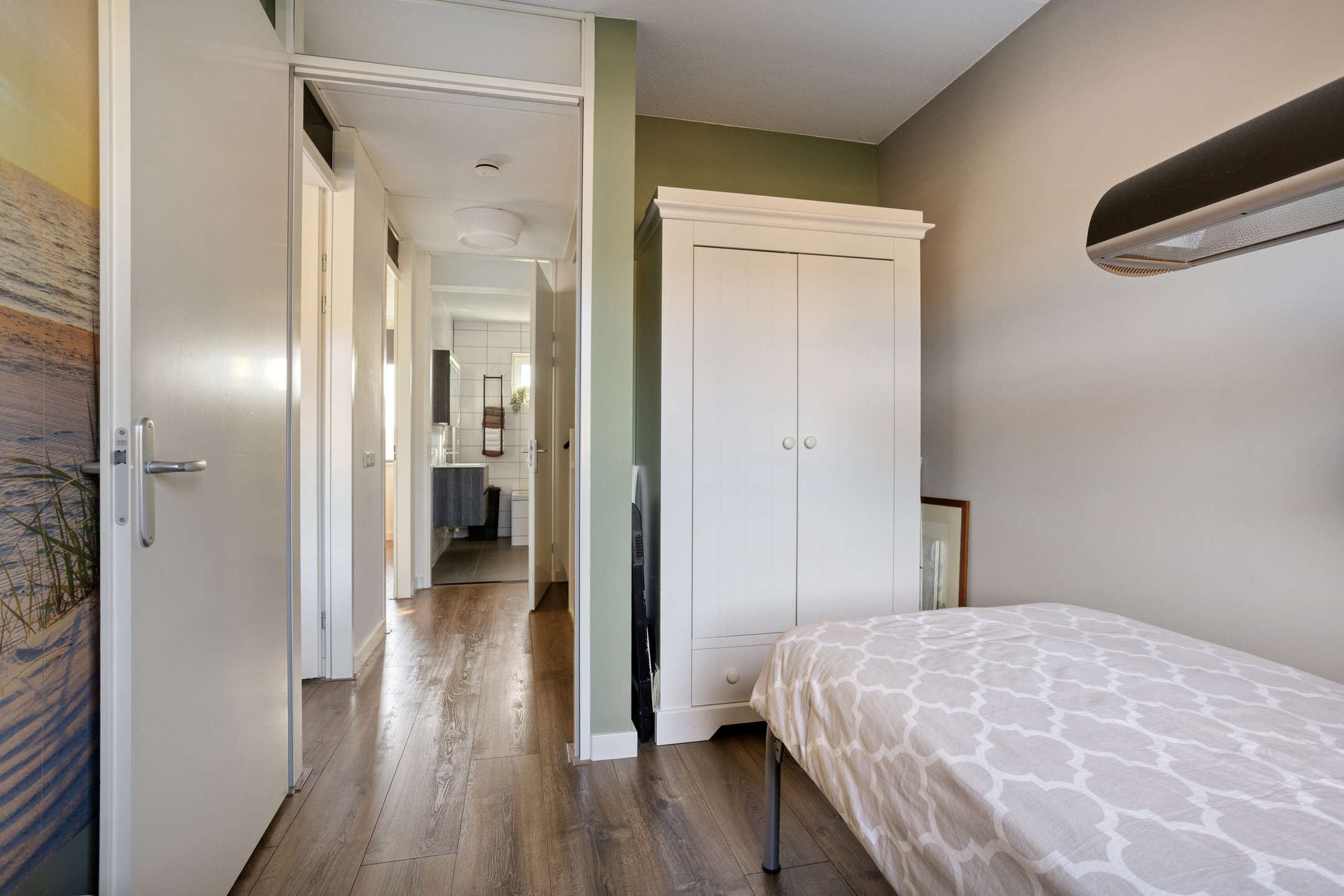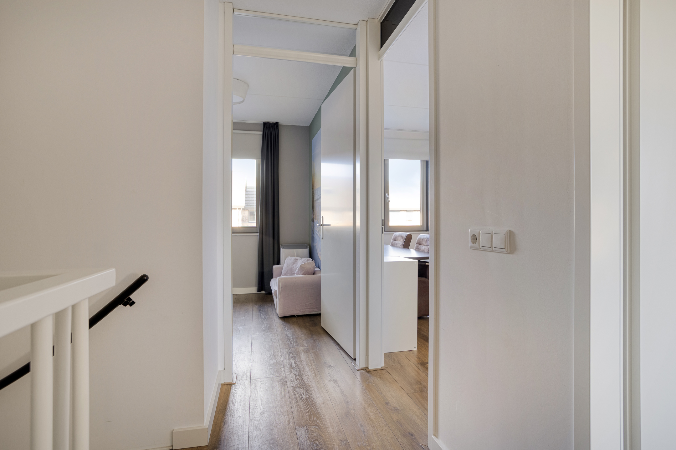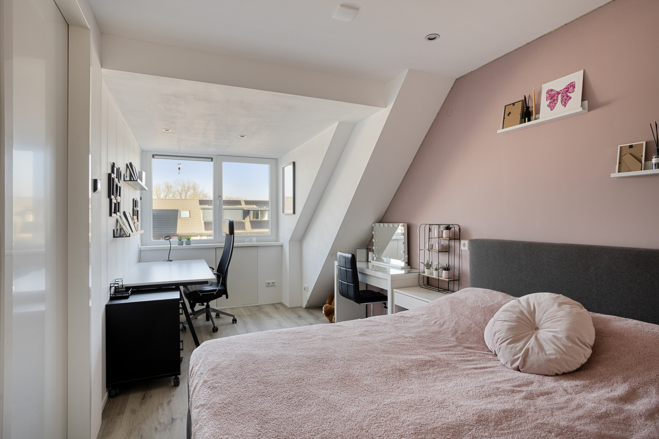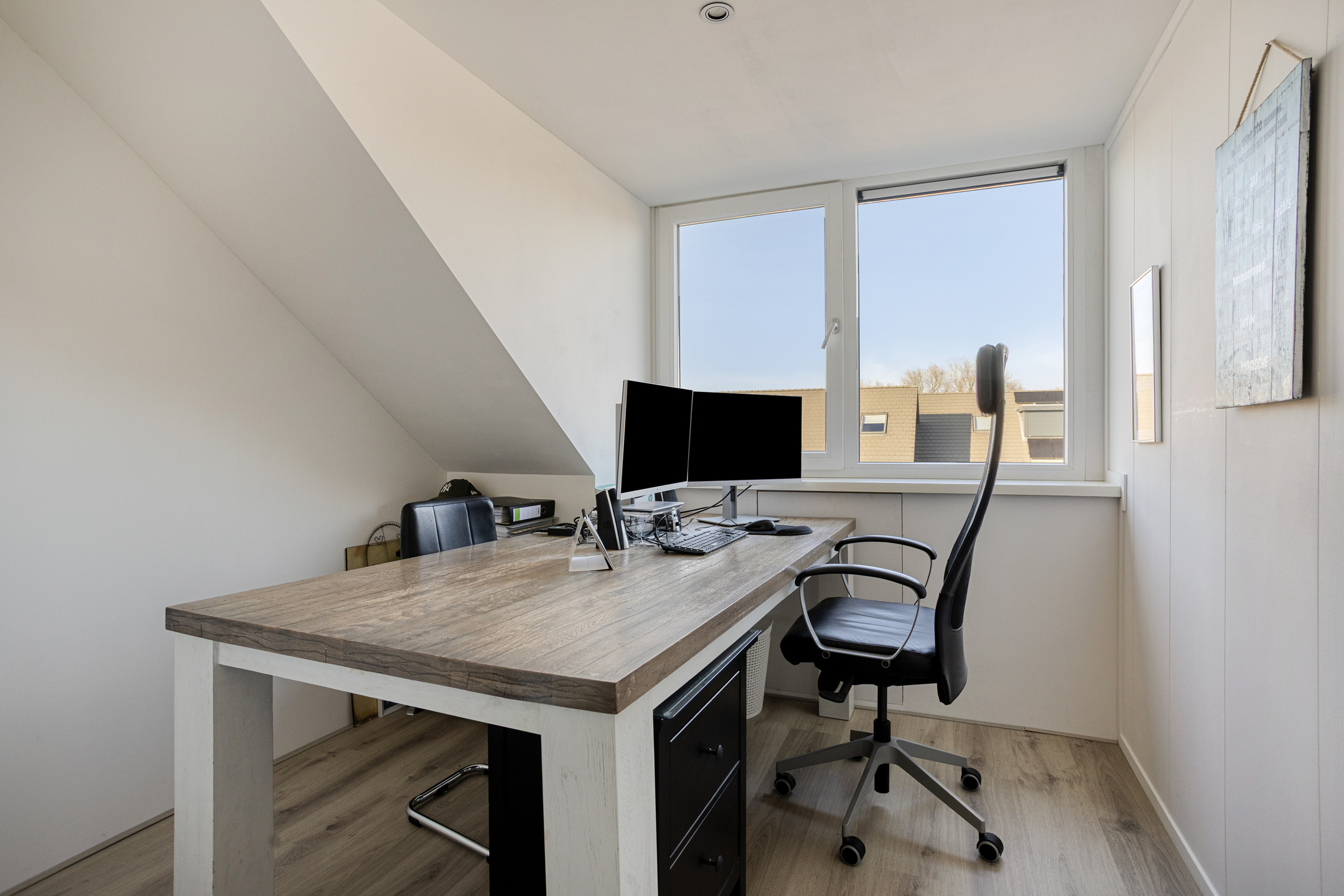 Een grote onderhoudsvrije kunststof dakkapel aan de achterzijde. Een royale slaapkamer van ca. 16 m² en een extra kantoor-/hobbykamer (eenvoudig samen te voegen tot één grote ruimte, de tussenwand staat los op de laminaatvloer).