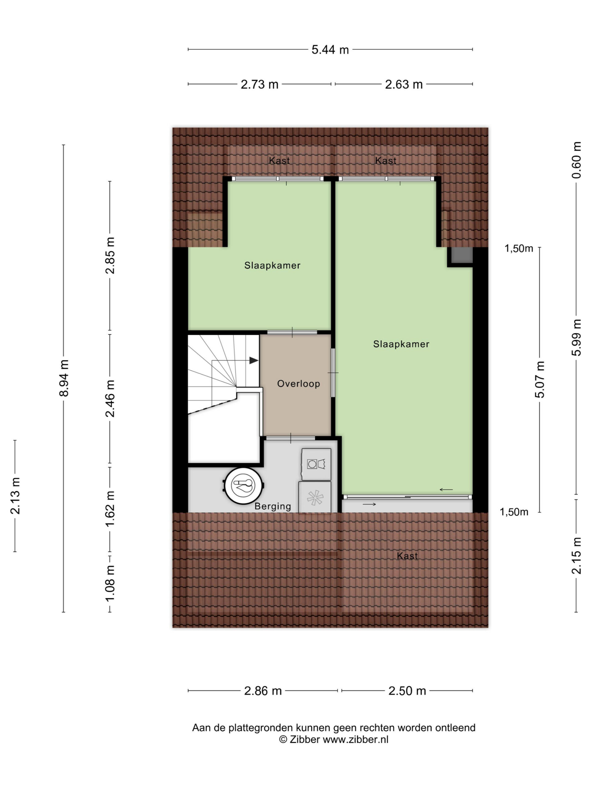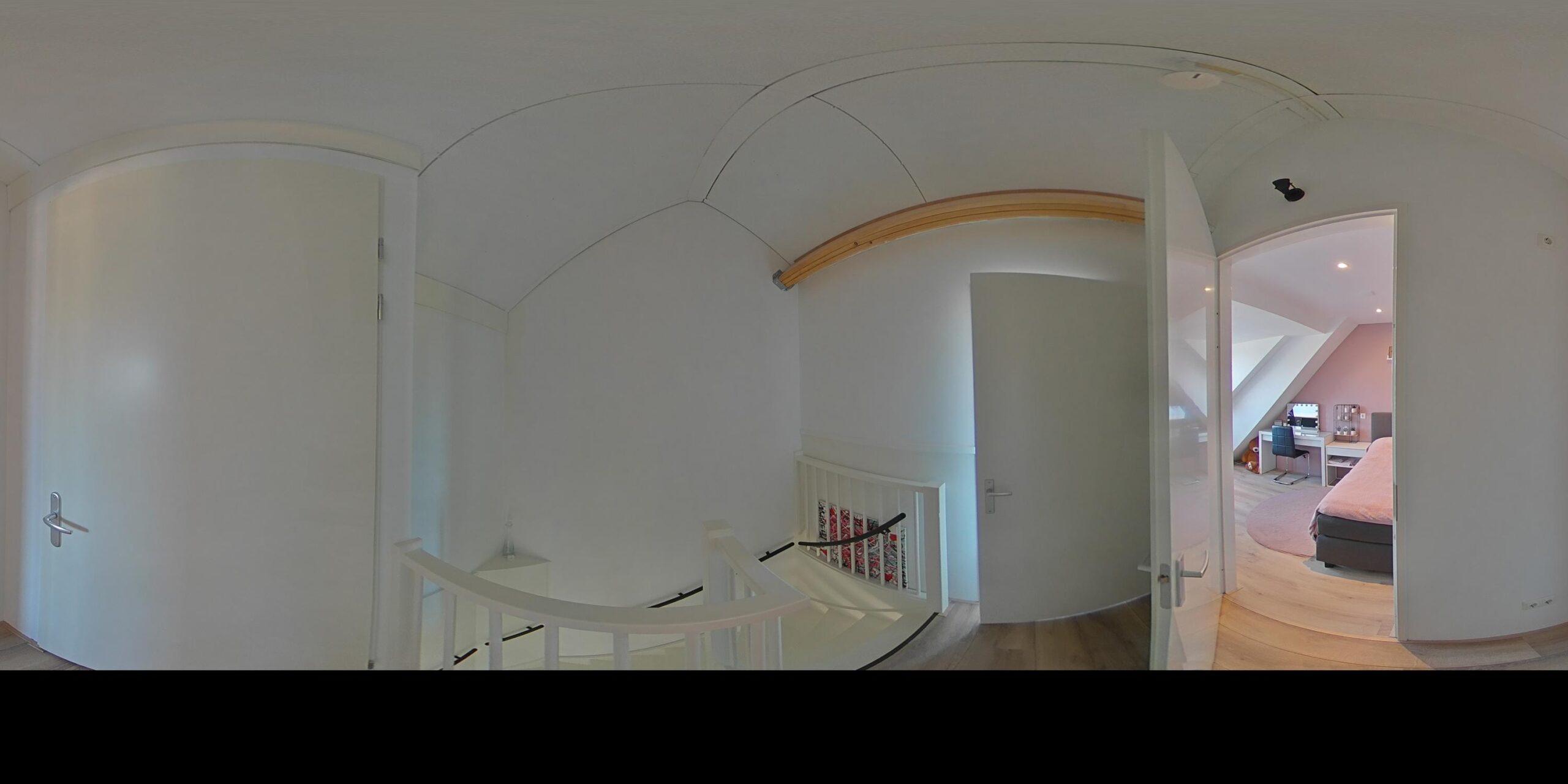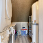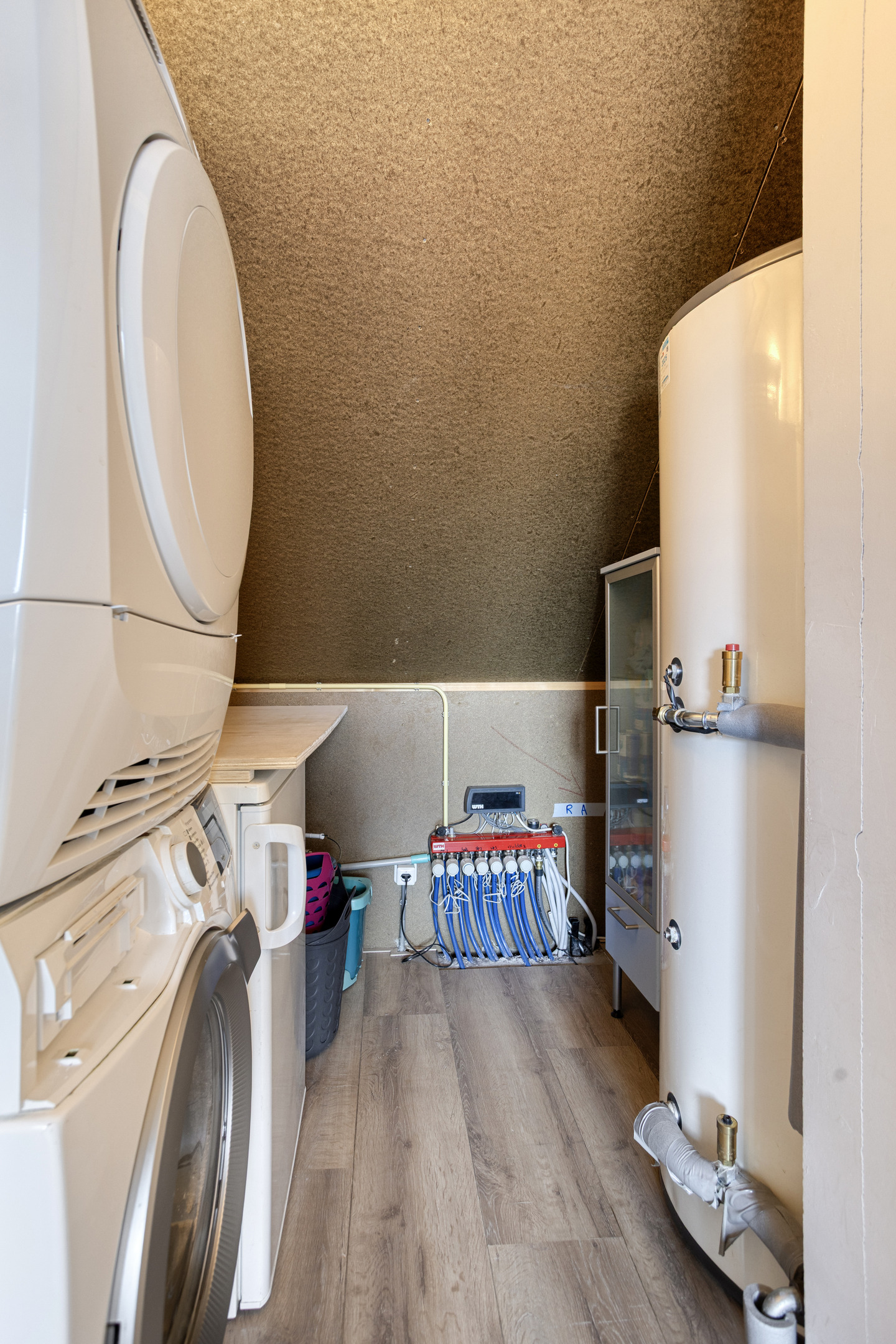De tweede verdieping is bereikbaar via een vaste trap. Hier vindt u de overloop met technische ruimte (warmtepompopstelling) en aansluitingen voor wasmachine en droger.