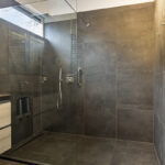 o Tweede badkamer: Moderne badkamer met wastafelmeubel en inloopdouche.