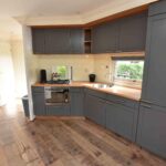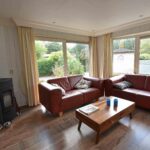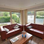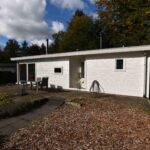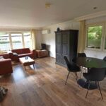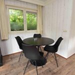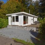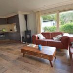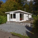 Indeling chalet: entree – open keuken v.v. inbouwapparatuur – ruime woonkamer v.v. pellet kachel en openslaande deuren naar de tuin – 2 slaapkamers ± 2.99 x 2.48 en 1.98 x 1.45 meter v.v. vaste kast – badkamer v.v. douche, wastafel en toilet.