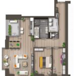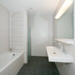 Hal / entree met garderobe – meterkast – modern zwevend toilet met fonteintje – ruime lichte woonkamer – toegang tot het balkon – luxe open keuken v.v. siemens inbouwapparatuur (o.a. koel-/vriescombinatie, vaatwasser, wasemkap, gaskookplaat en combi oven) – 2 ruime slaapkamers – moderne badkamer v.v. ligbad, inloopdouche en dubbele wastafel – berging / bijkeuken met C.V.-opstelling en aansluiting voor de wasmachine en droger. De keuken, badkamer en het toilet zijn in een moderne lichte kleurstelling uitgevoerd en luxe afgewerkt. Bij de appartementen behoren afzonderlijke bergingen. De appartementen zijn v.v. videofooninstallatie en te bereiken via de lift.