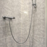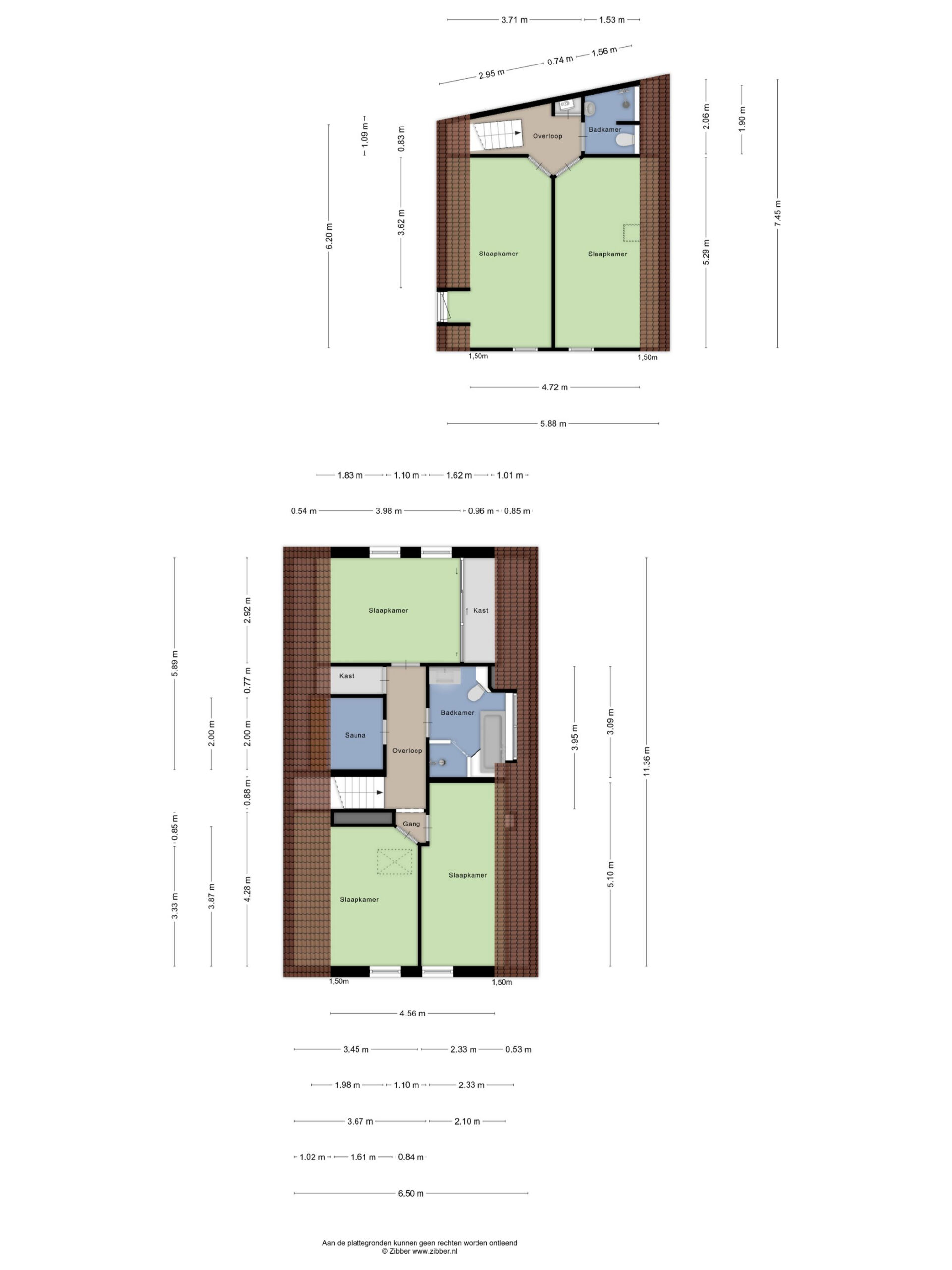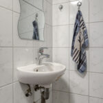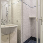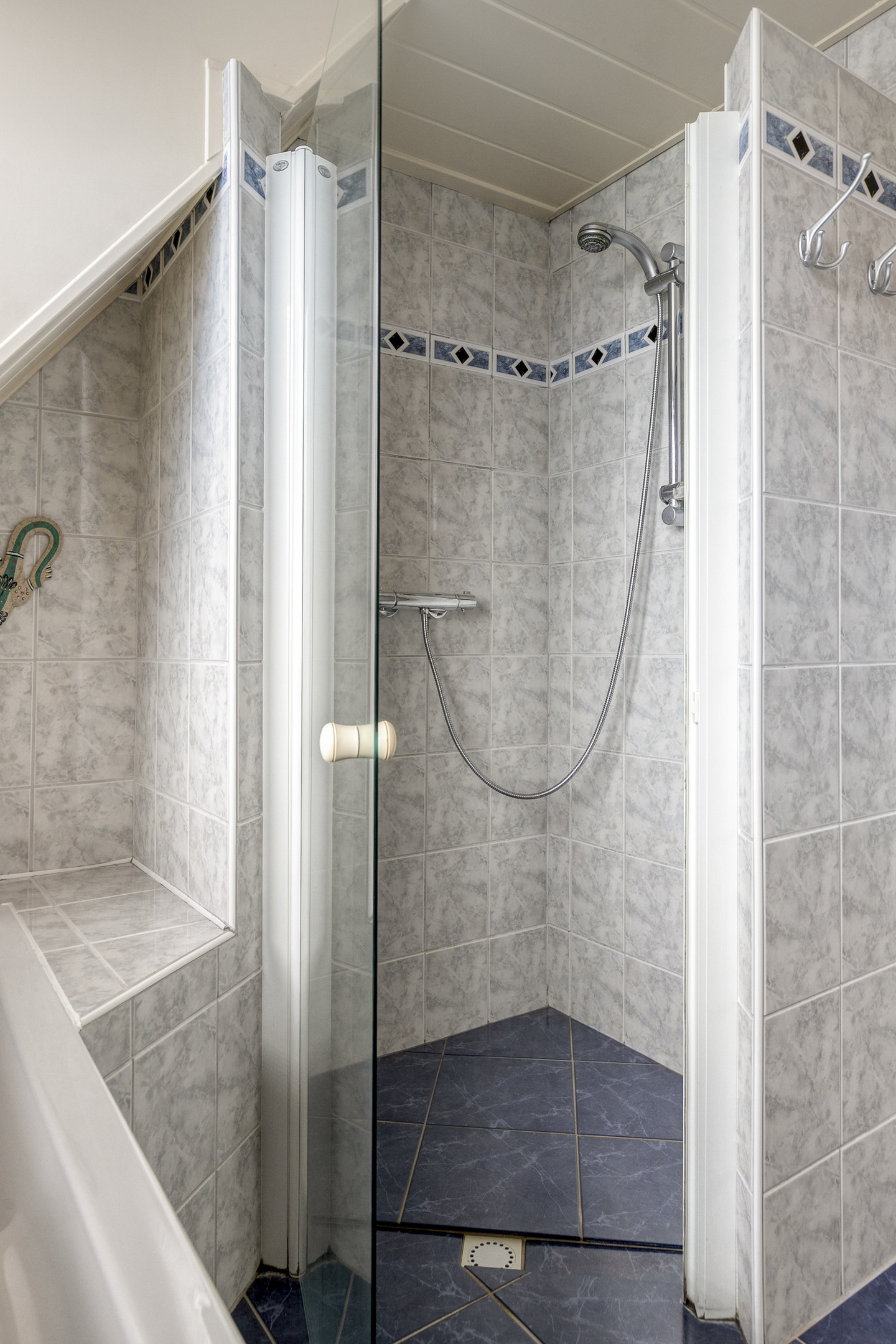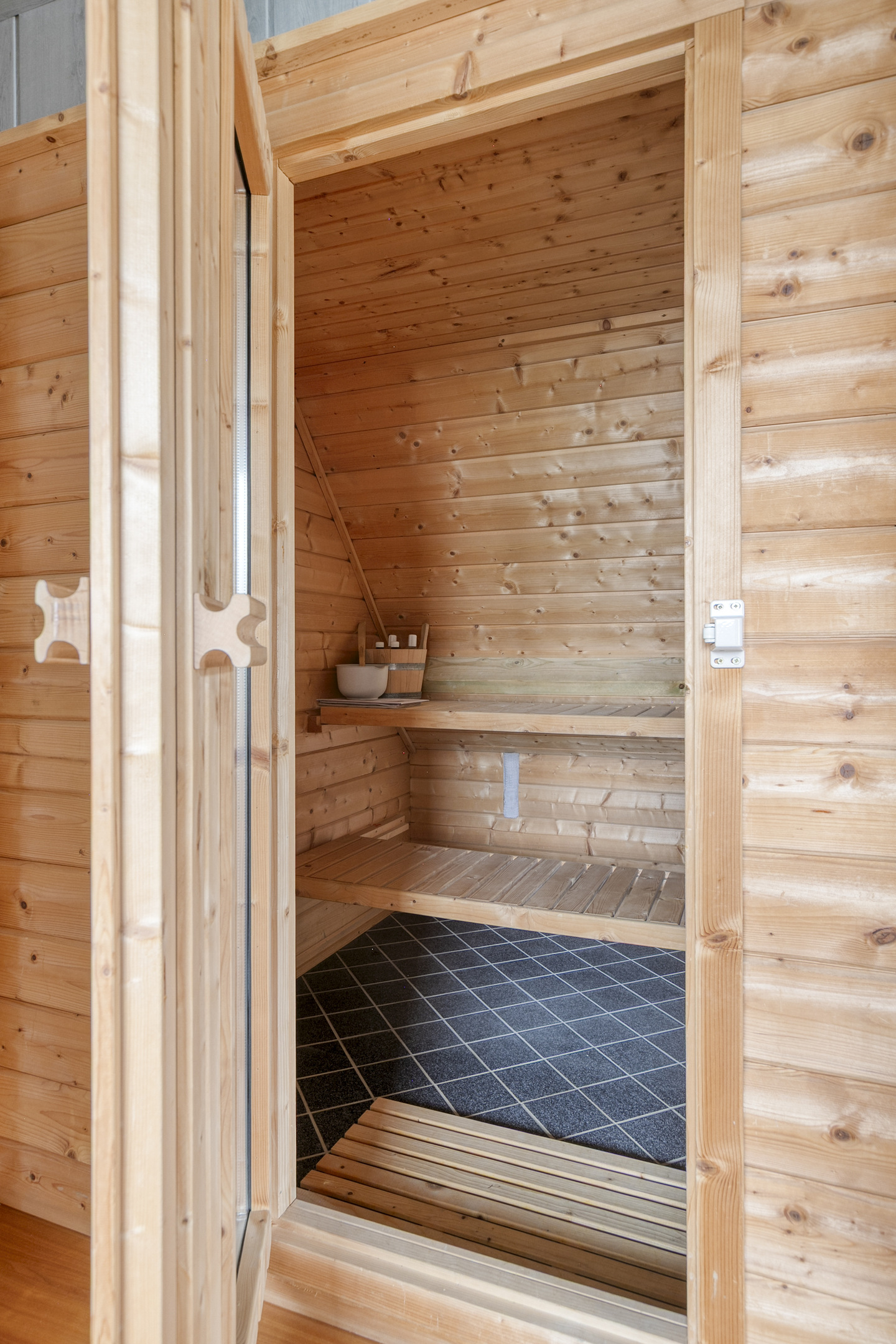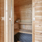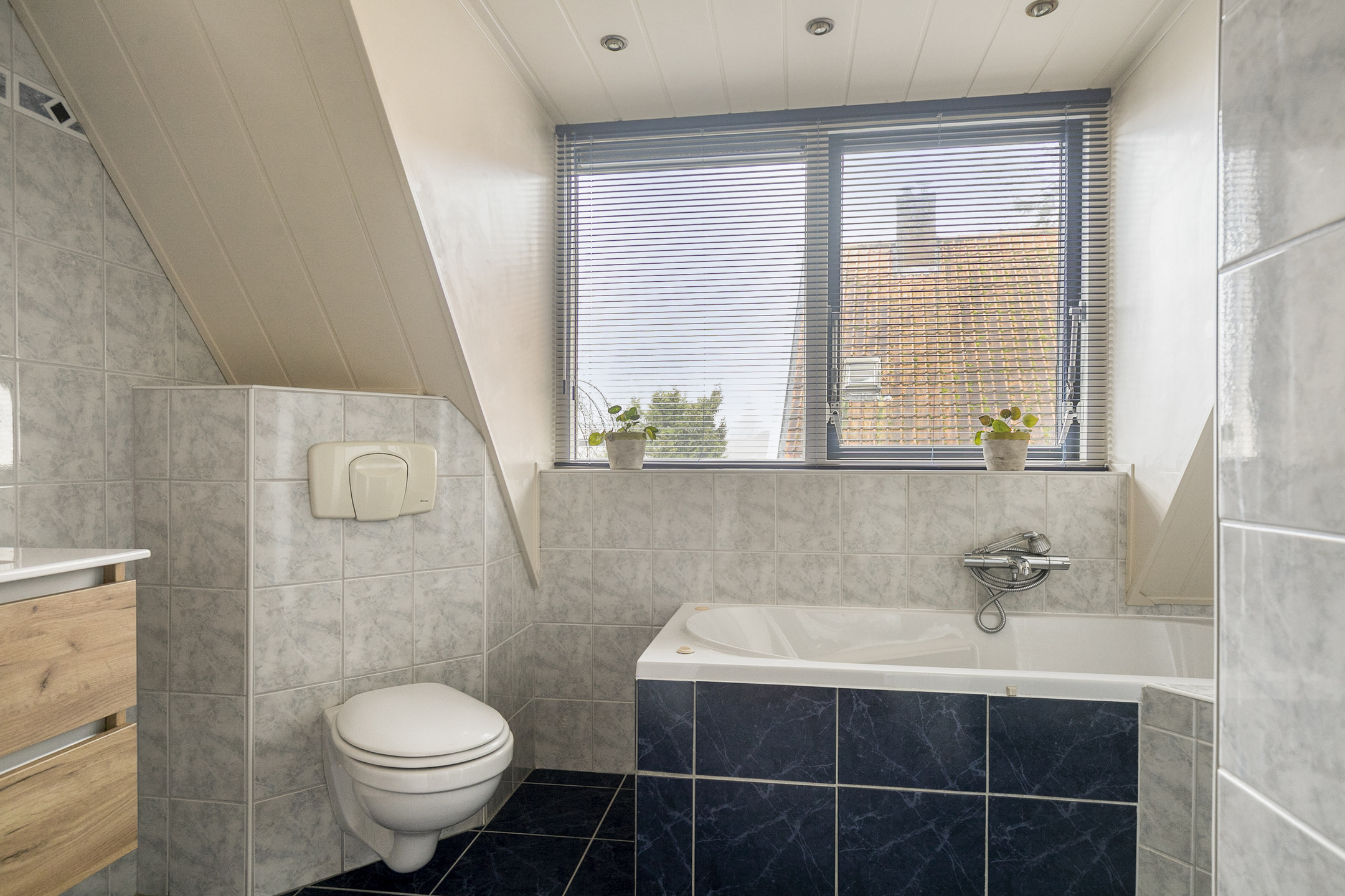 Overloop – tweede badkamer met inloopdouche, wastafelmeubel, toilet en ligbad met whirlpool – sauna – drie ruime slaapkamers (ca. 5.10 x 2.33 m, 2.40 x 4.28 m en 4.56 x 2.92 m). De ouderslaapkamer beschikt over een vaste kast. Ook deze badkamer is voorzien van vloerverwarming.